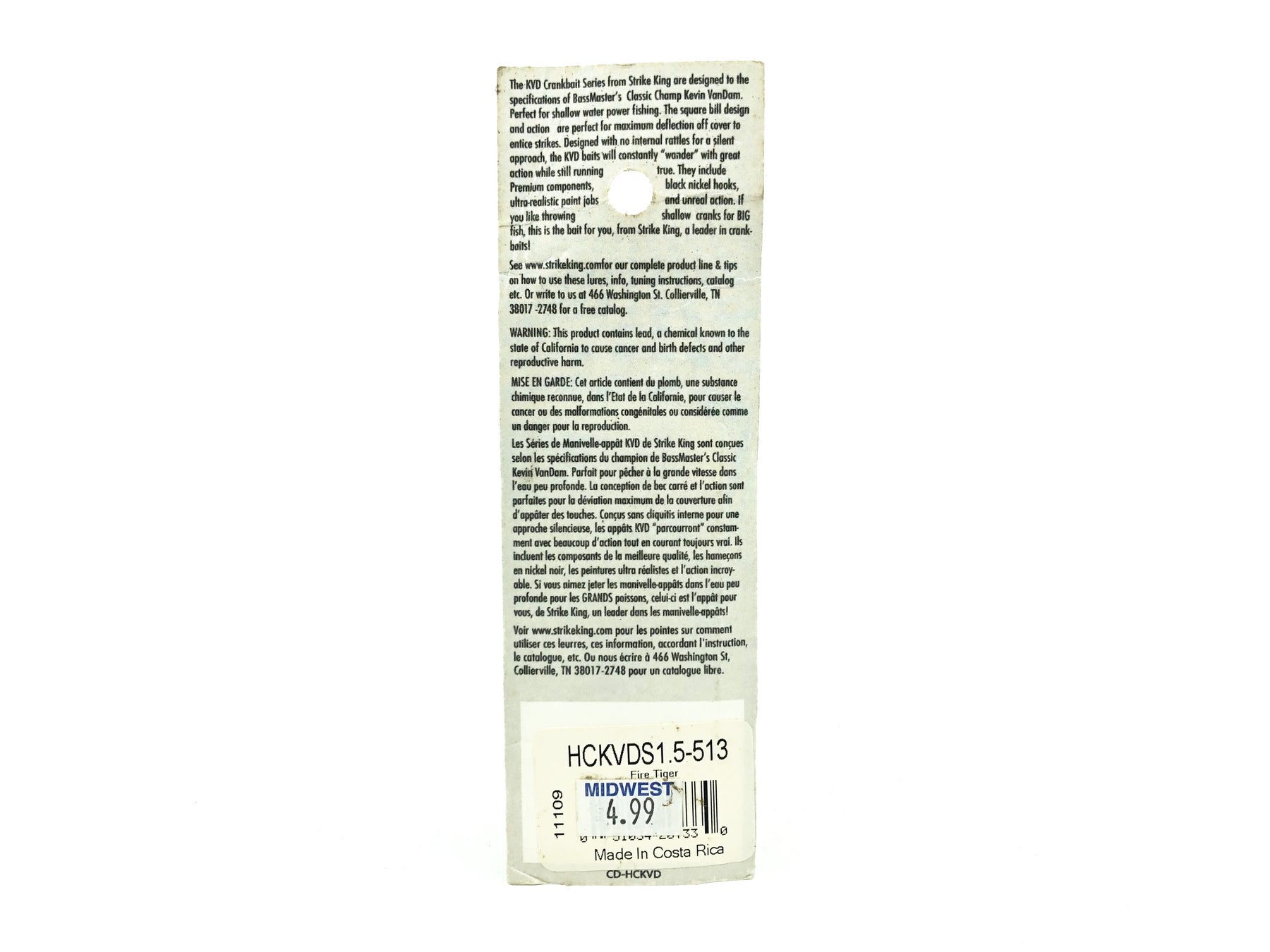 Strike King KVD Squarebill 1.5 Crankbait, Fire Tiger Color New on Card. Great find here with very little wear on the card. Lure dives 3-5", fish or collect. See photos.