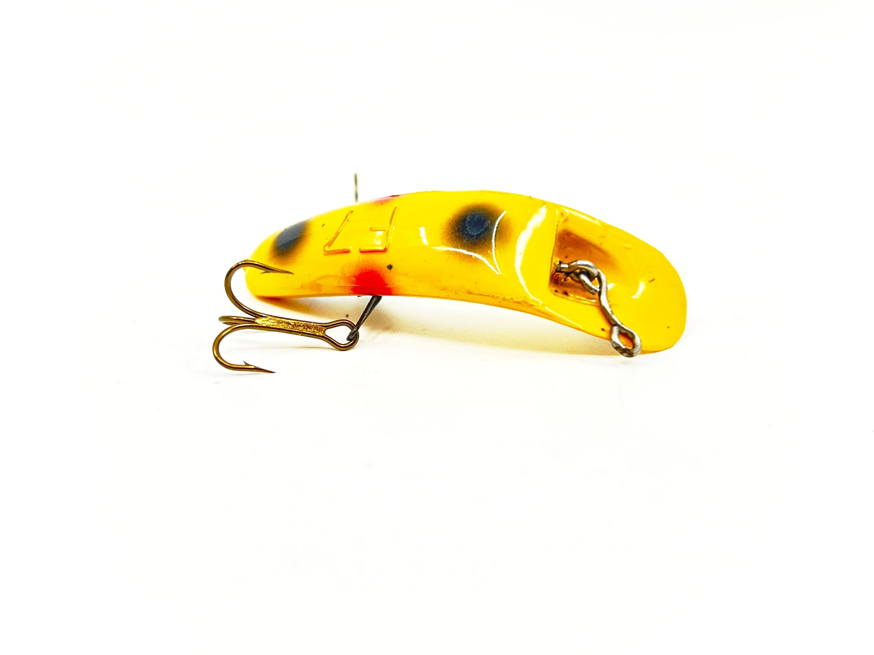 Helin Flatfish F7, Yellow with Spots Color.  About 2 1/4" long.  Used with some minor wear but overall in very good condition, see photos. One of the most successful fishing lures ever made.  Fish or collect!  Vintage plastic version.