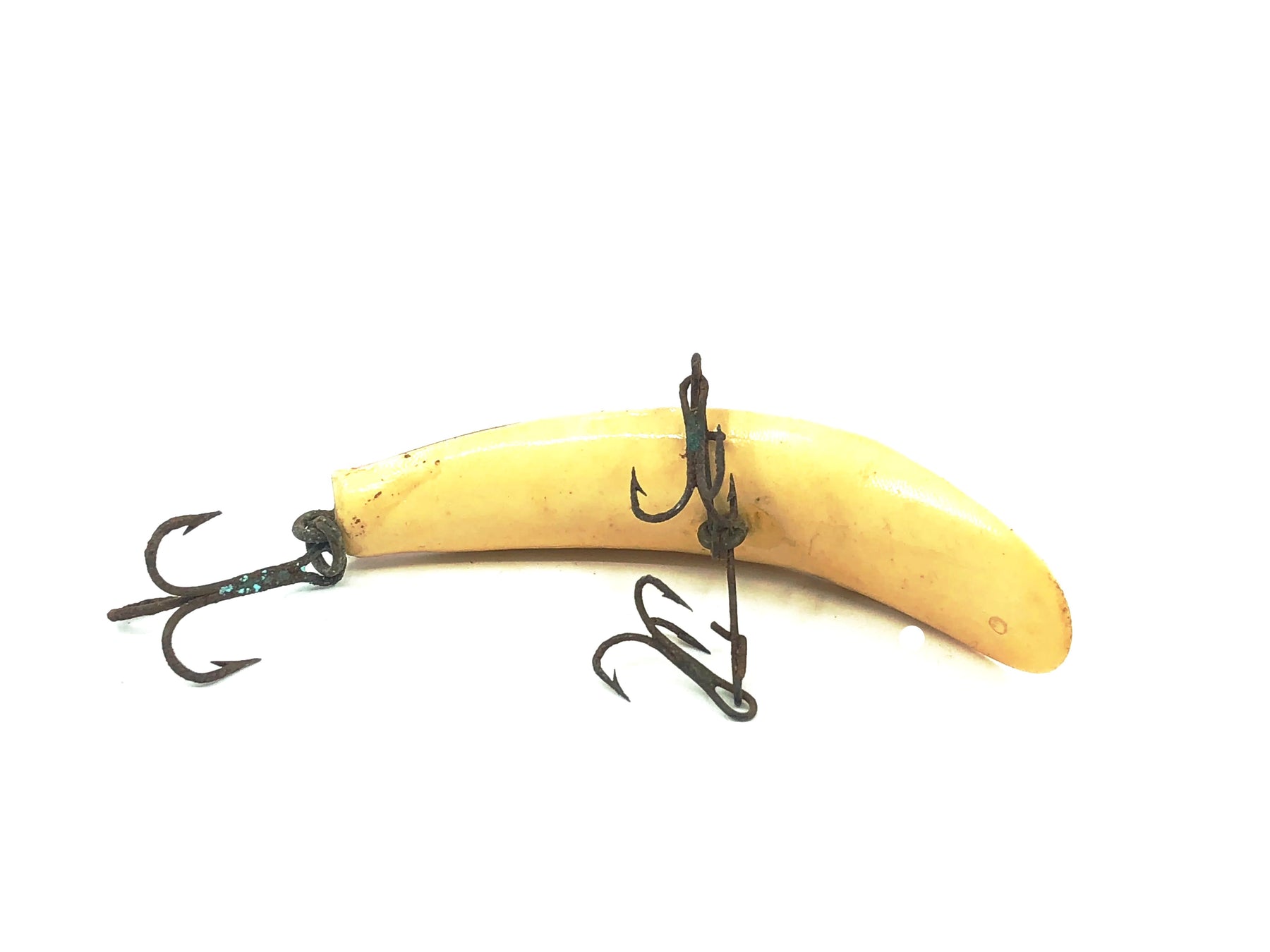Helin Flatfish LU, WR White Bottom/Red Top Color.  About 3 1/8" long.  Used with some minor wear and rust on the hooks but in overall good condition, see photos.  One of the most successful fishing lures ever made.  Fish or collect!  Vintage plastic version.