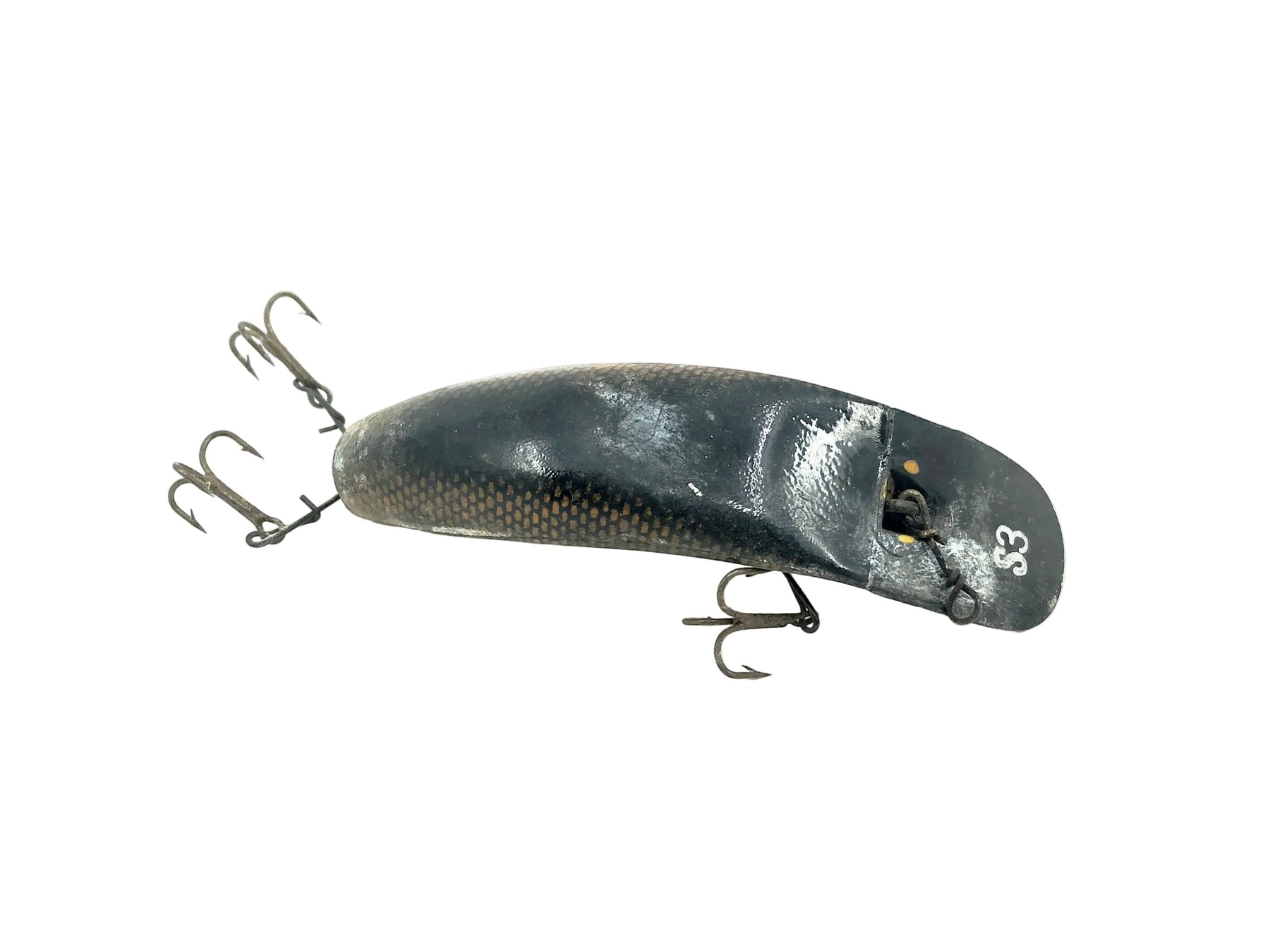 Helin Wooden Flatfish S3, PS Perch Scale Color. About 3 3/4" long. Used with some wear and marks but overall ok condition, see photos. One of the most successful fishing lures ever made. Fish or collect! Vintage plastic version.