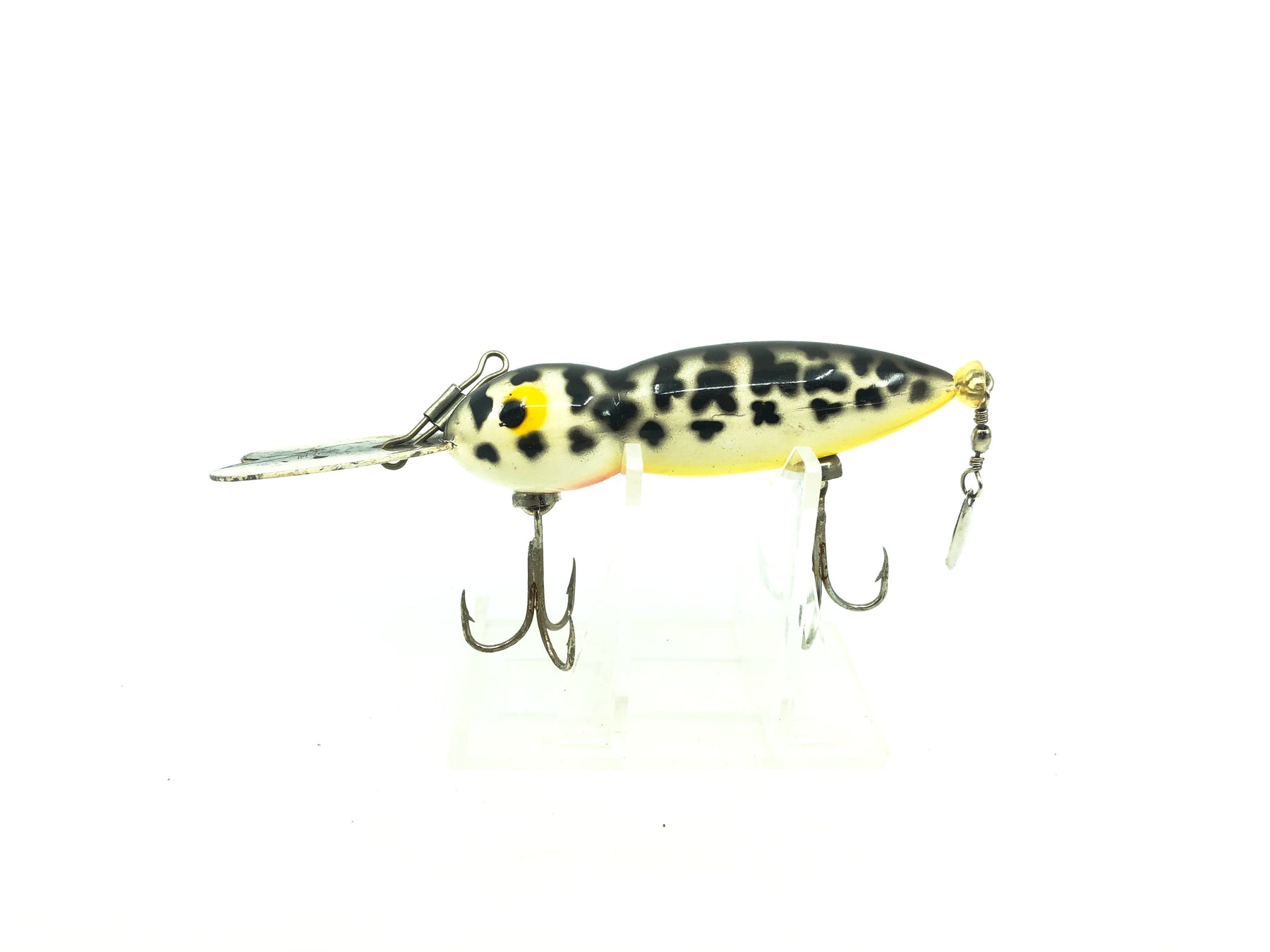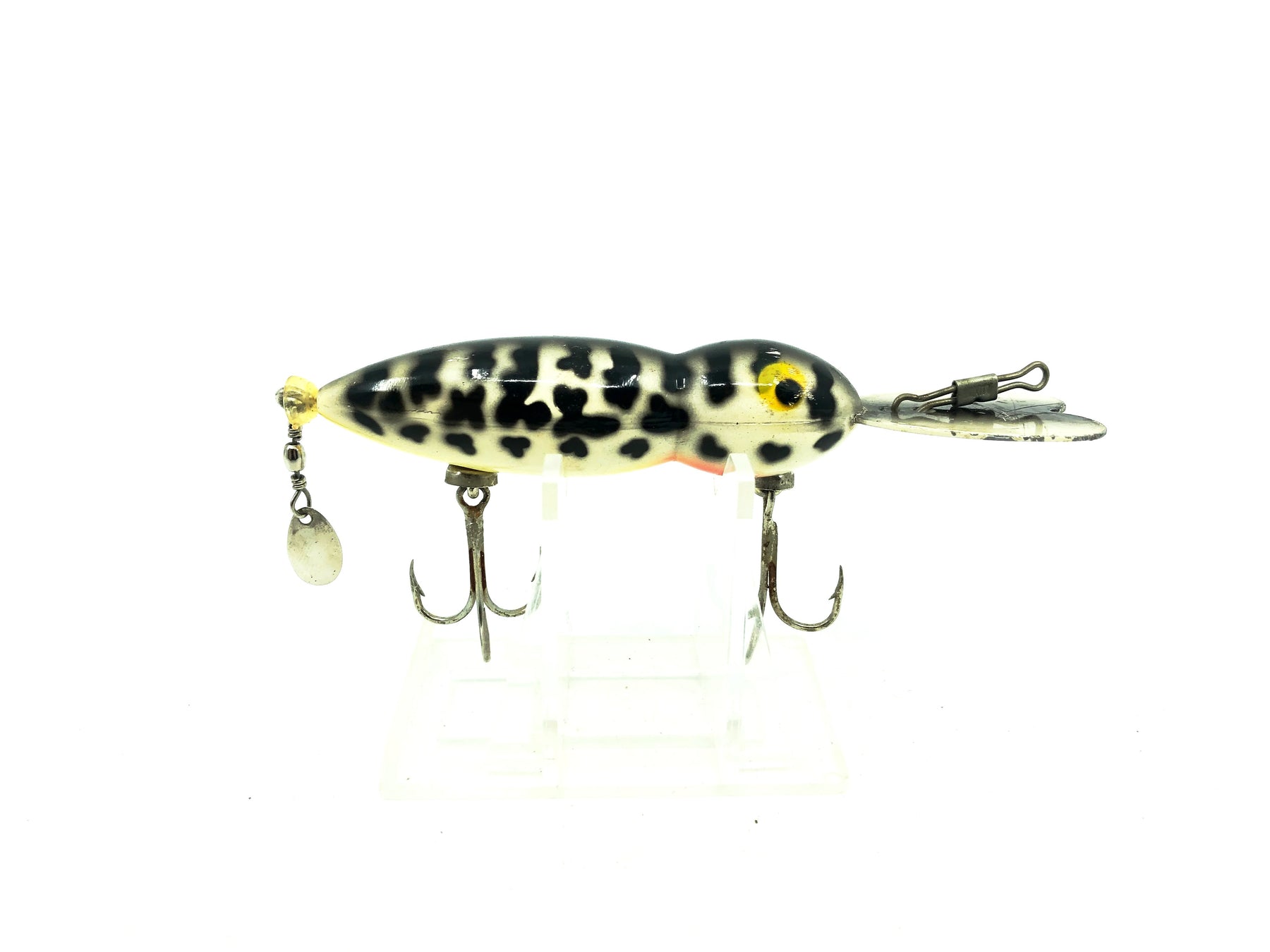Whopper Stopper Hellbender, White Coachdog Color. About 4 1/4" long including the lip. Used vintage lure with some wear but overall good condition. These lures are collectible and highly sought after by fisherman. Killer on bass! Fish or collect this vintage classic bait. See photos.