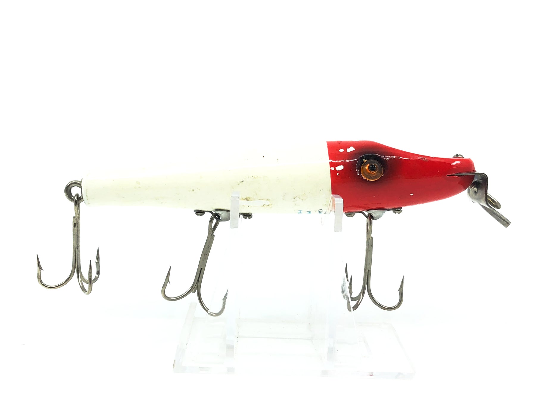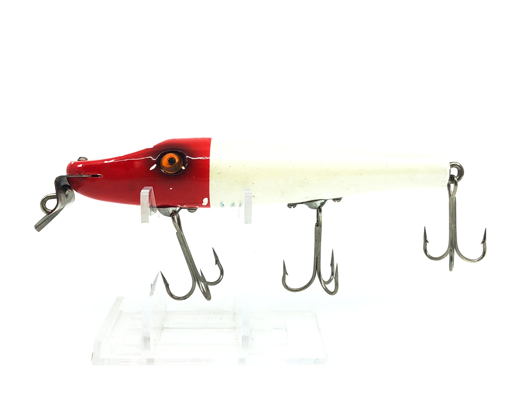 Shakespeare Pike-Getum, Red Head/White Color. Newer Hong Kong Shakespeare lure. This bait is about 4 1/2" long not including it's lip. Used with some wear but in overall good condition. See photos. Fish or collect.