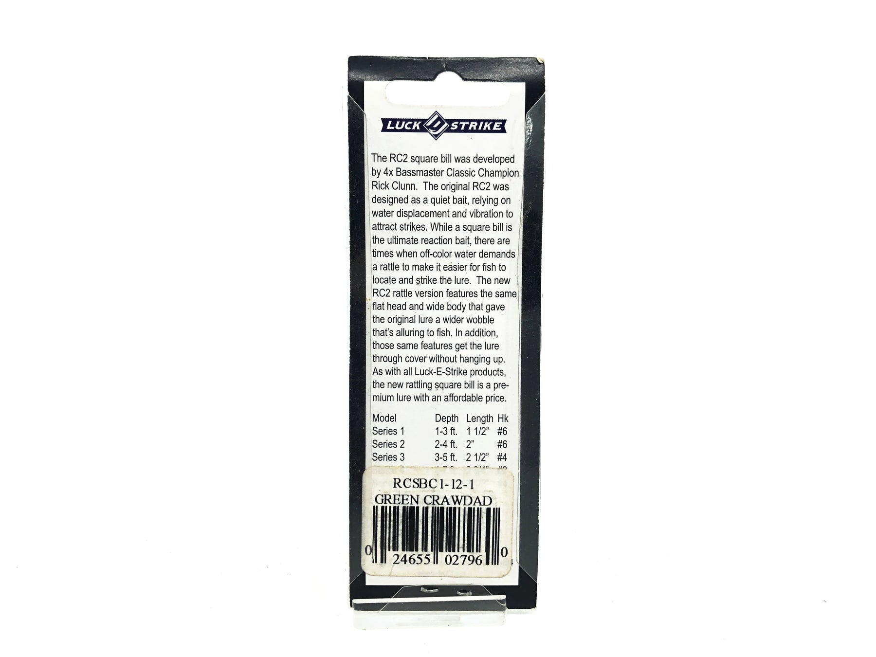 Rick Clunn Luck-E-Strike RC Series 2, Green Crawdad Color on Card. About 1 7/8" long excluding the lip. This lure is new on card and the card is in good condition. Quality lure from fishing legend Rick Clunn. Great lure to fish or collect. See photos.