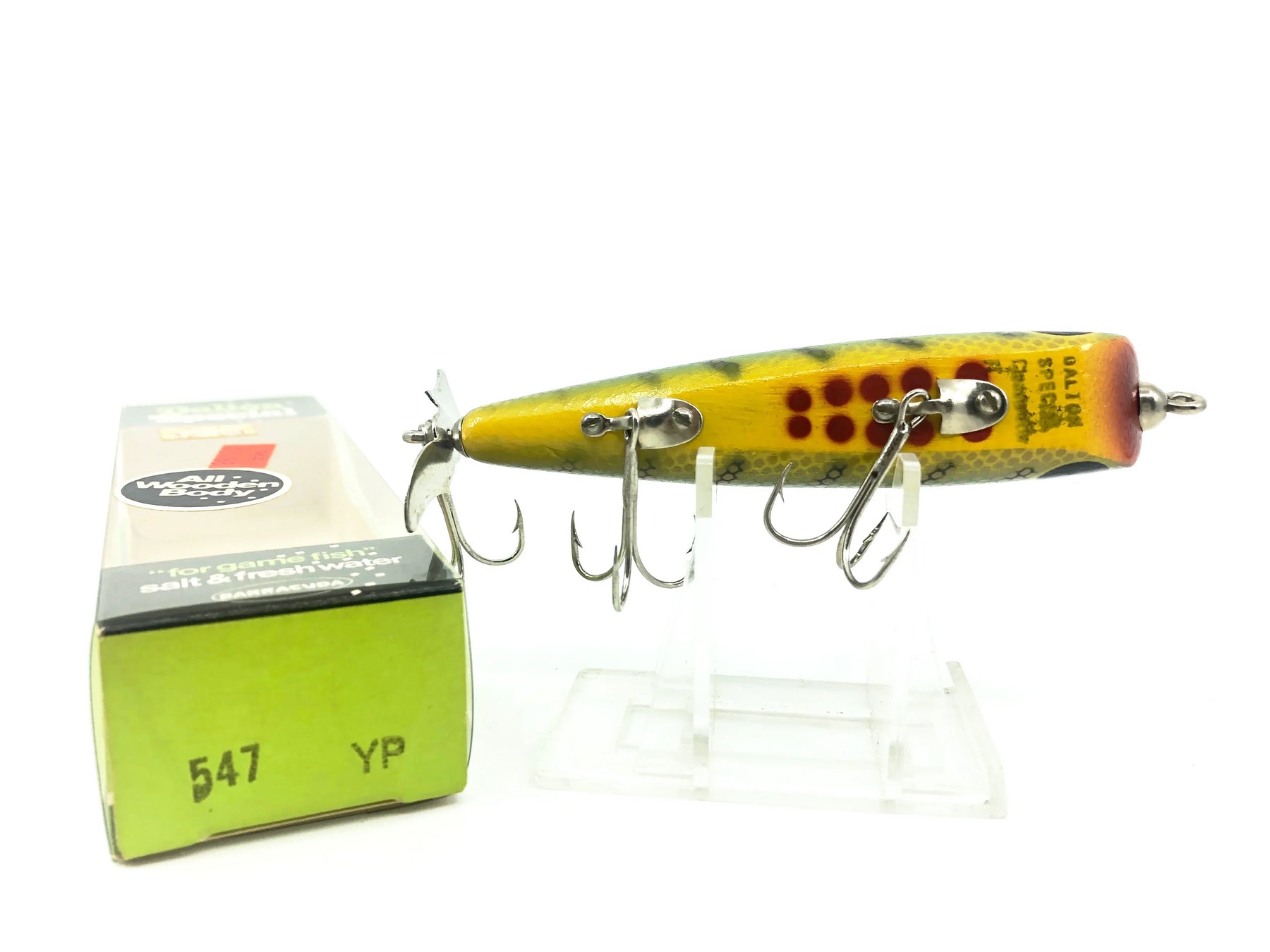 Barracuda Dalton Special, YP Yellow Perch Color with Box. About 4" long. Lure is new in box, box is in great condition. Fish or collect you can't go wrong on this one.  See photos.  One of the all time classic baits in wood.
