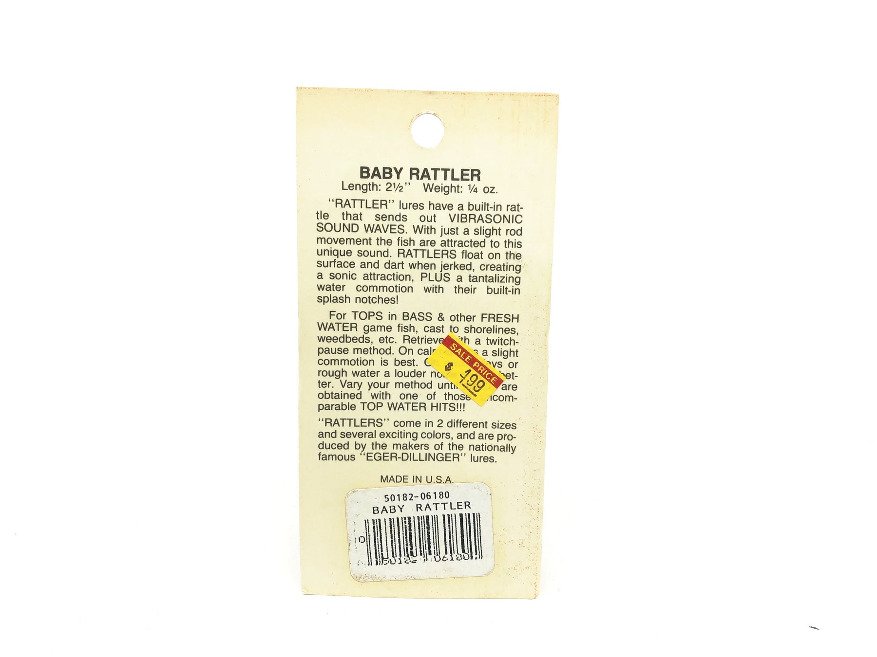 Rhoden's Baby Rattler, Black Color on Card. Great Florida bait here. Lure is about 2 1/2" long. This bait is new on card and the card is in good condition aside from some minor wear and dents. Fish or collect, see photos.