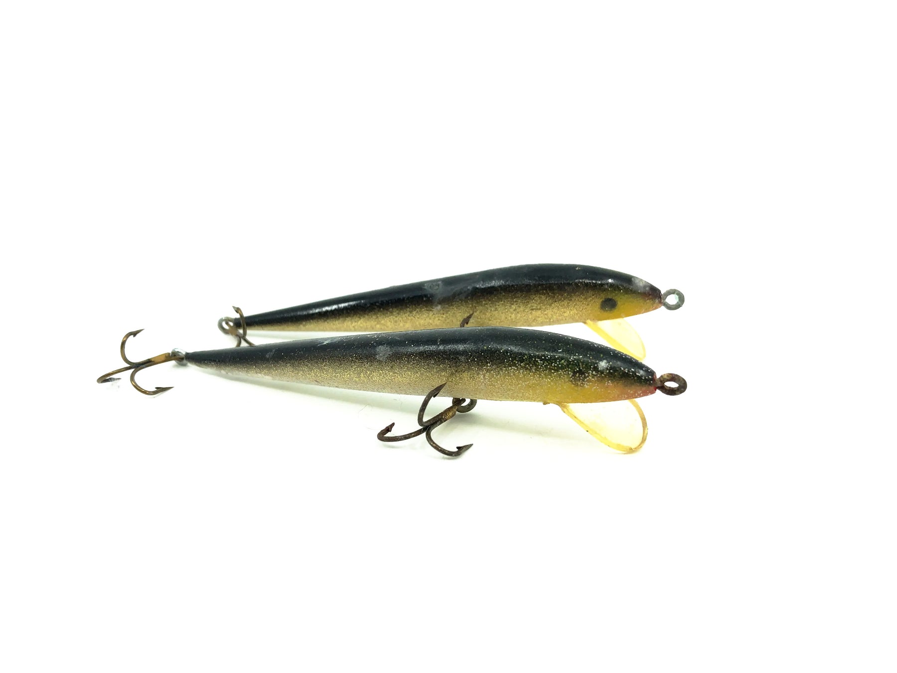 Floating Minnow Combo. This pack includes two identical floating minnow type baits from an unknown maker. Both are about 4" long. These both have a good amount of wear but still have some life. Take fishing or add to your displays. See photos.