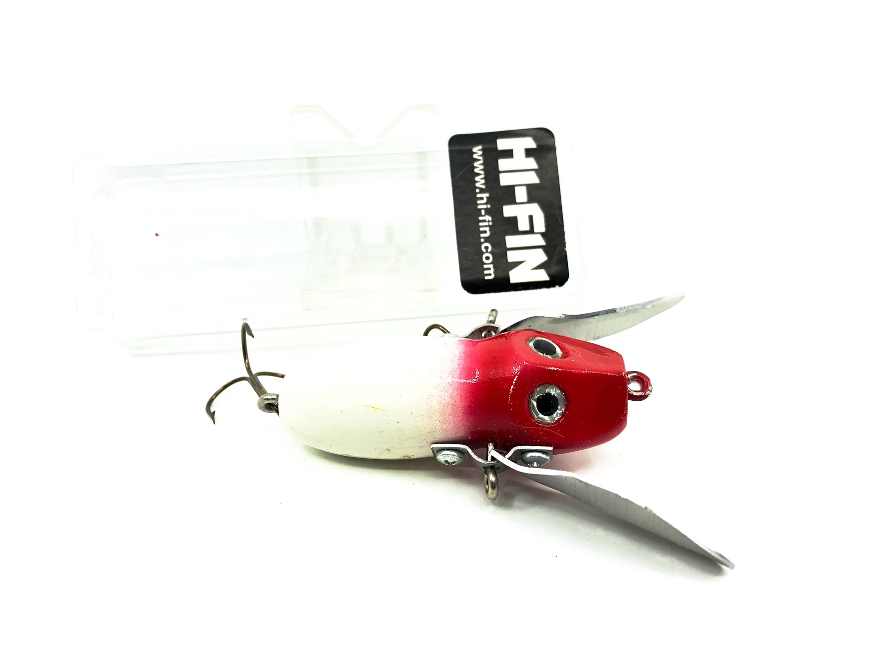 Hi-Fin Bass Creeper Lure, White/Red Head Color in Box. Great wooden topwater bait. Lure is about 2 3/4" long. This bait is new in box however it has some minor blemishes. Box is in great condition. See photos.