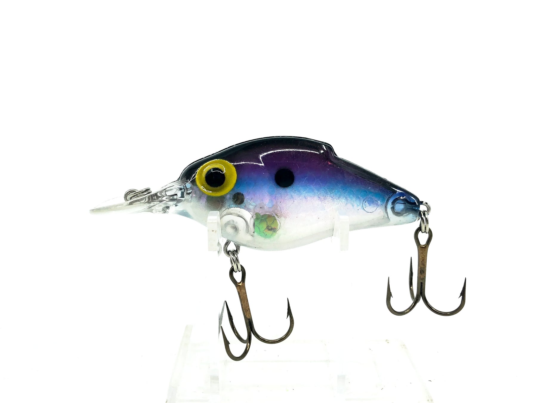 Storm Shallow Lightnin' Shad, Silver/Violet/Blue Reflector Color. About 2 1/2" body excluding lip. Used with some minor wear but in overall good condition, see photos. Fish or collect a great Storm bait.
