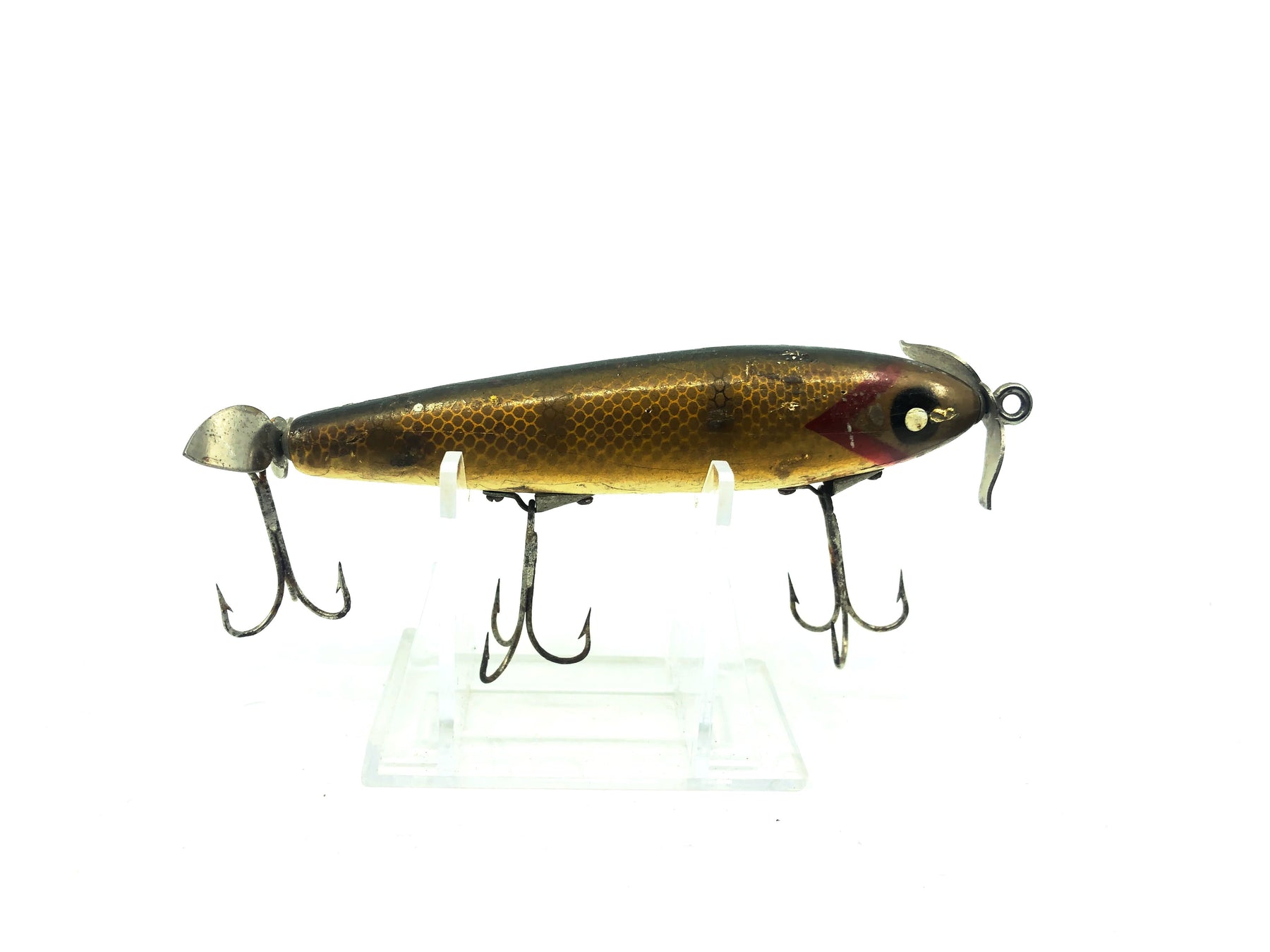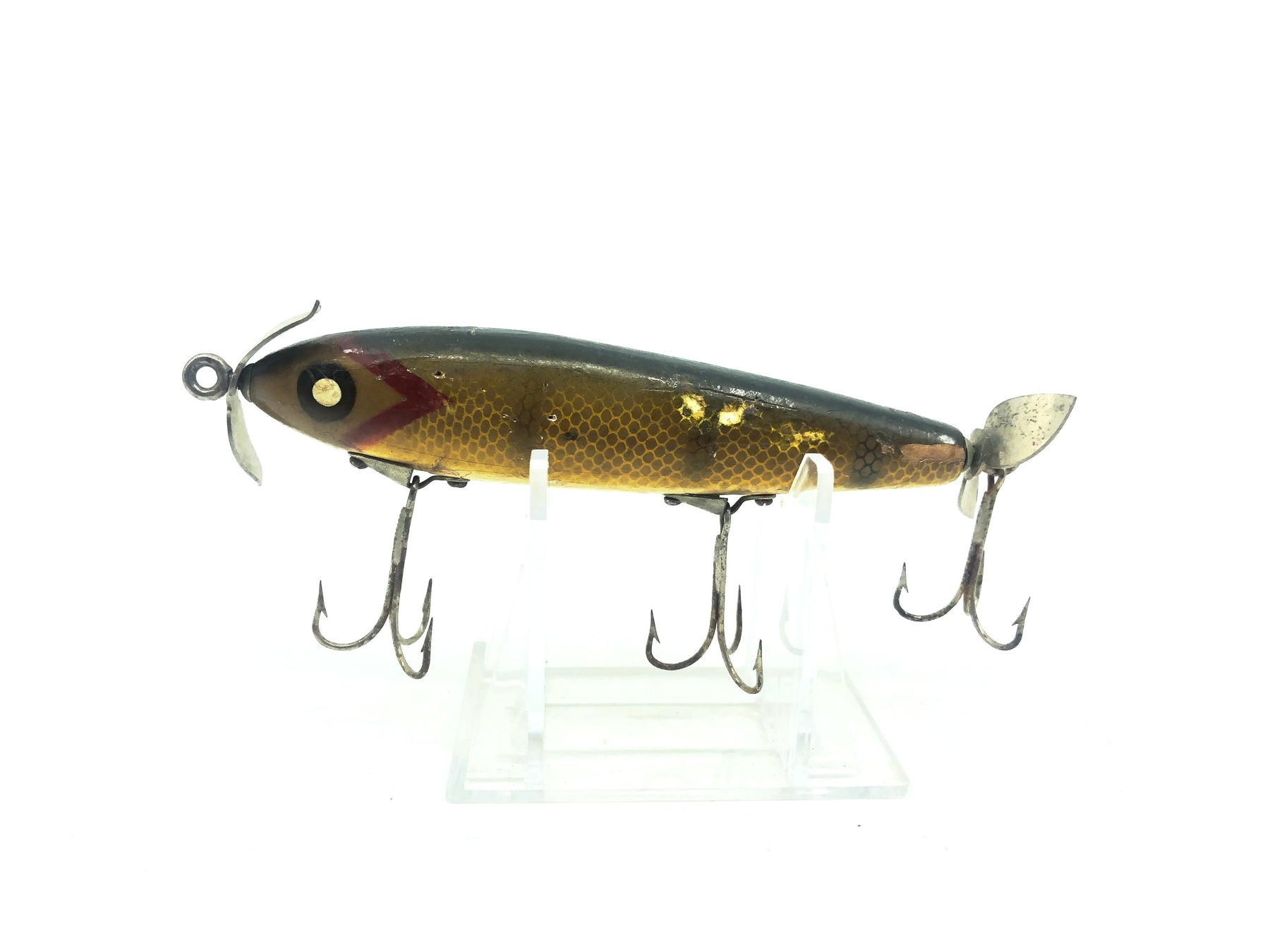 Paw Paw Aristocrat Shiner 8600, Pikie Scale Color. About 4" long. Used vintage lure with some wear as shown but in overall good condition, see photos. Tougher lure to find. Grab this great lure while you can.