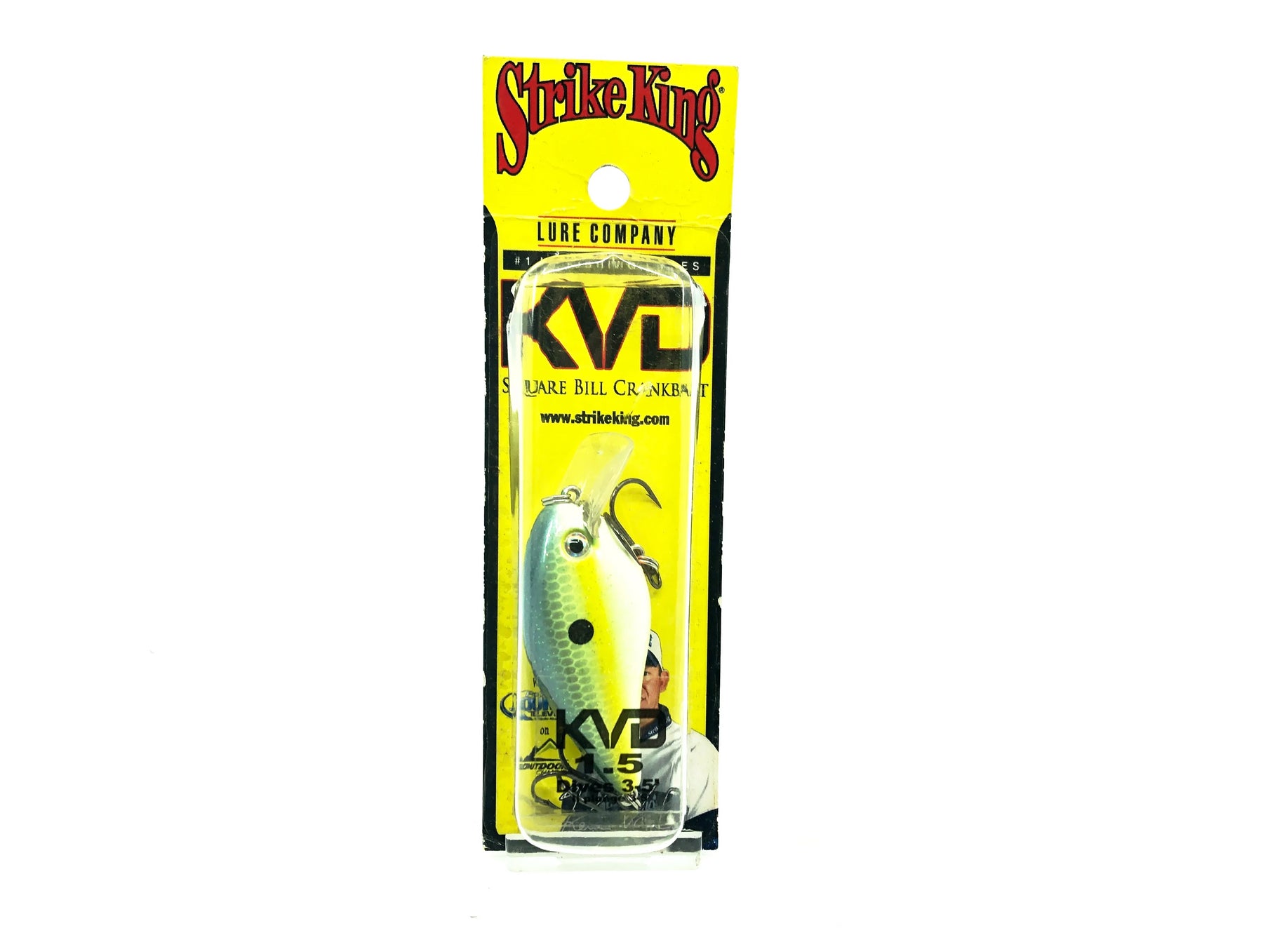 Strike King KVD Squarebill 1.5 Crankbait, Chartreuse Sexy Shad Color New on Card. Great find here! Card is in good condition with some dents in the bubble. Lure dives 3-5", fish or collect. See photos. HCKVDR1.5-517