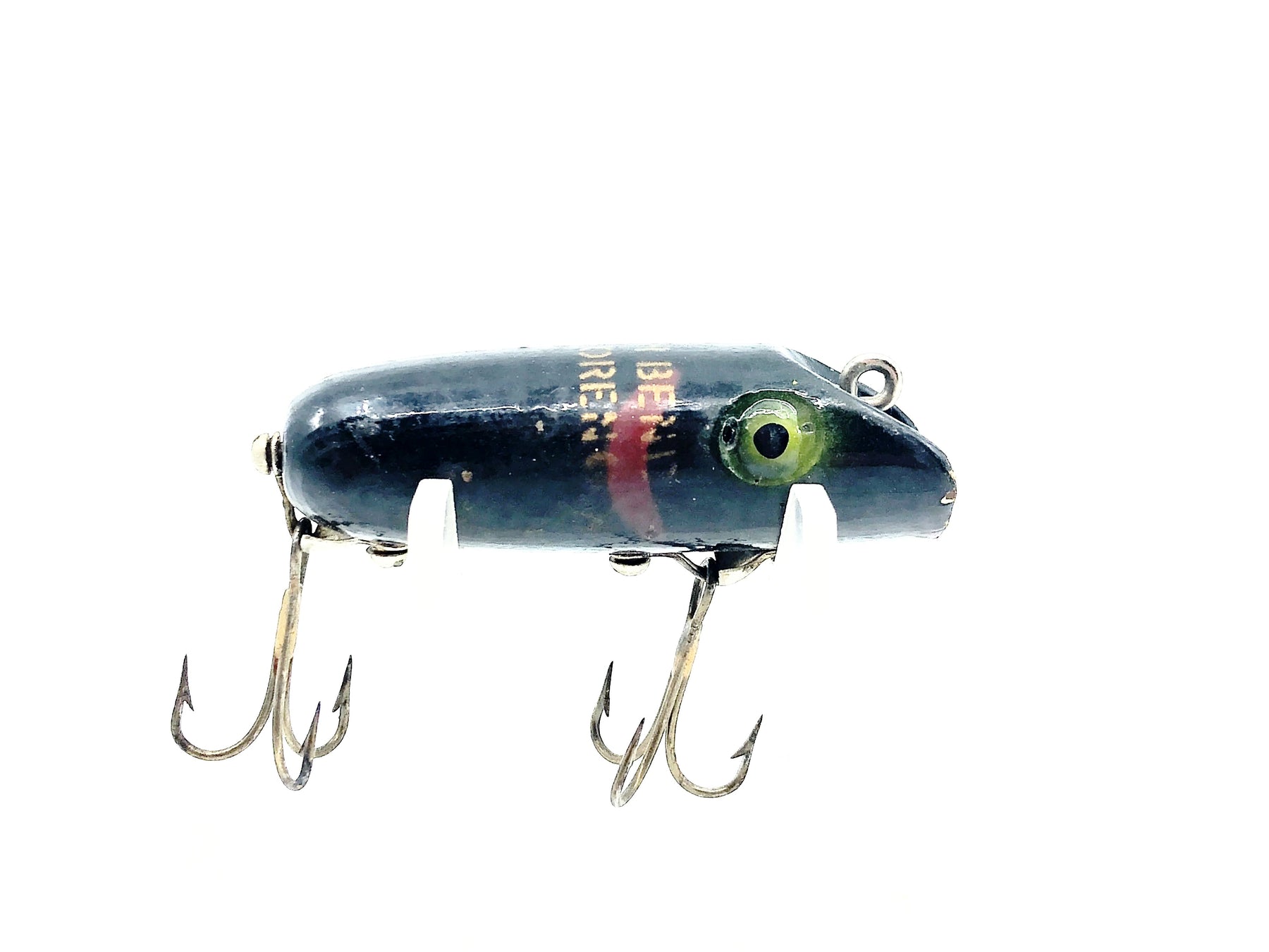South Bend Spin-Oreno, Black Color. Used lure in good condition with some minor wear and marks. About 2 1/8" long. Newer pressed eye model. This classic South Bend lure would look great in your collection or tackle box. See photos.