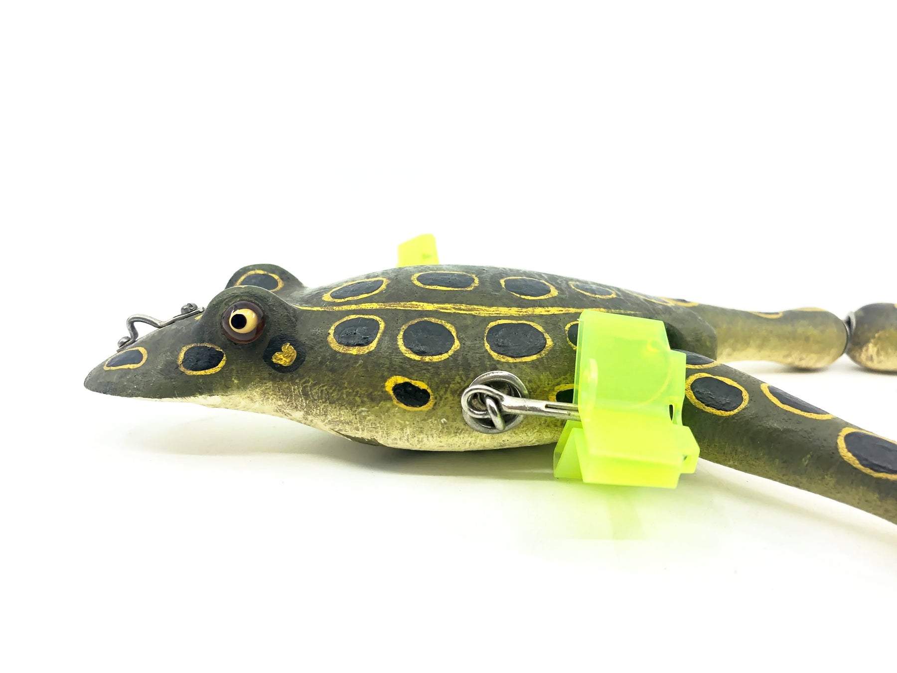 This founding Musky Frog is about 8 3/8" long excluding the hook and foot. It's in amazing condition, very little wear or any signs of marks to show its age. Hand painted in the style of Tony's early lures. The box has a small dent in the front but overall is in great condition!