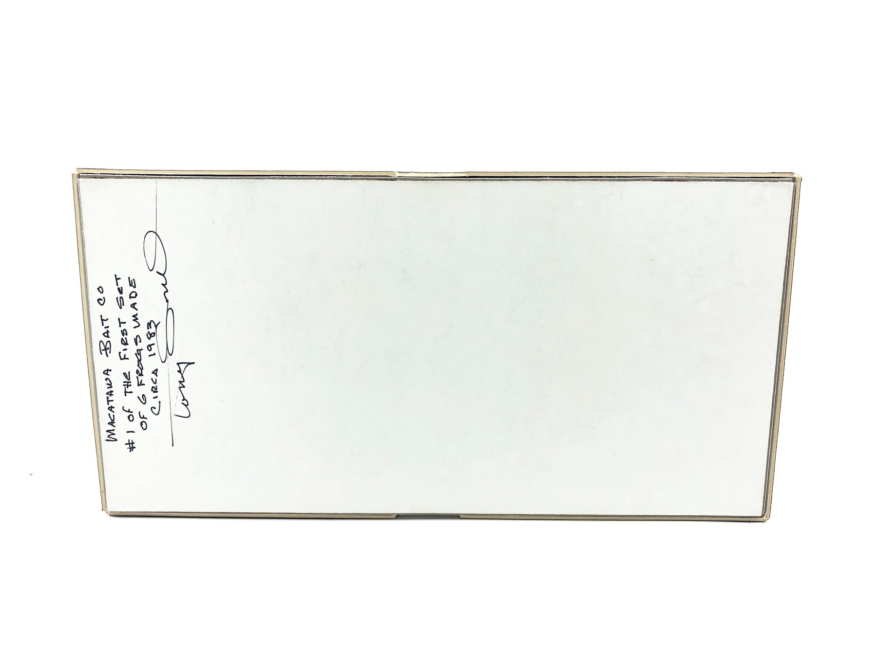 Macatawa Bait Co. 1st Musky Frog Made w/Box Circa. 1983. One of a kind Macatawa piece you will never have the chance to buy again. This is the first Musky Frog Tony made in his original set of 6, made in 1983. This is marked and signed on the back by Tony!