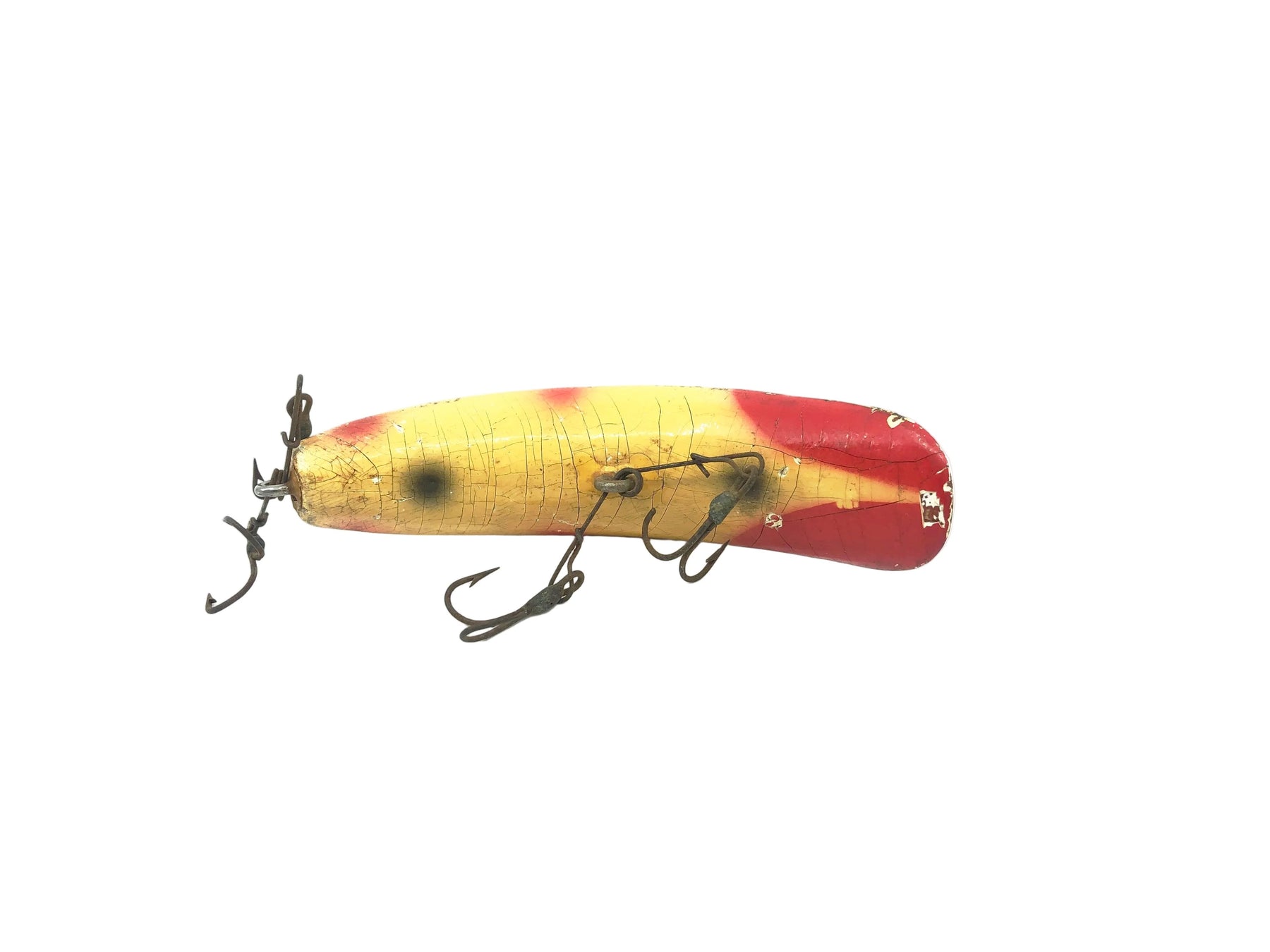 Helin Wooden Flatfish S3 White Black Stripe with Dots Color.  About 3 3/4" long.  Used with some minor wear but overall good condition, see photos.  One of the most successful fishing lures ever made.  Fish or collect!  Vintage wooden version.