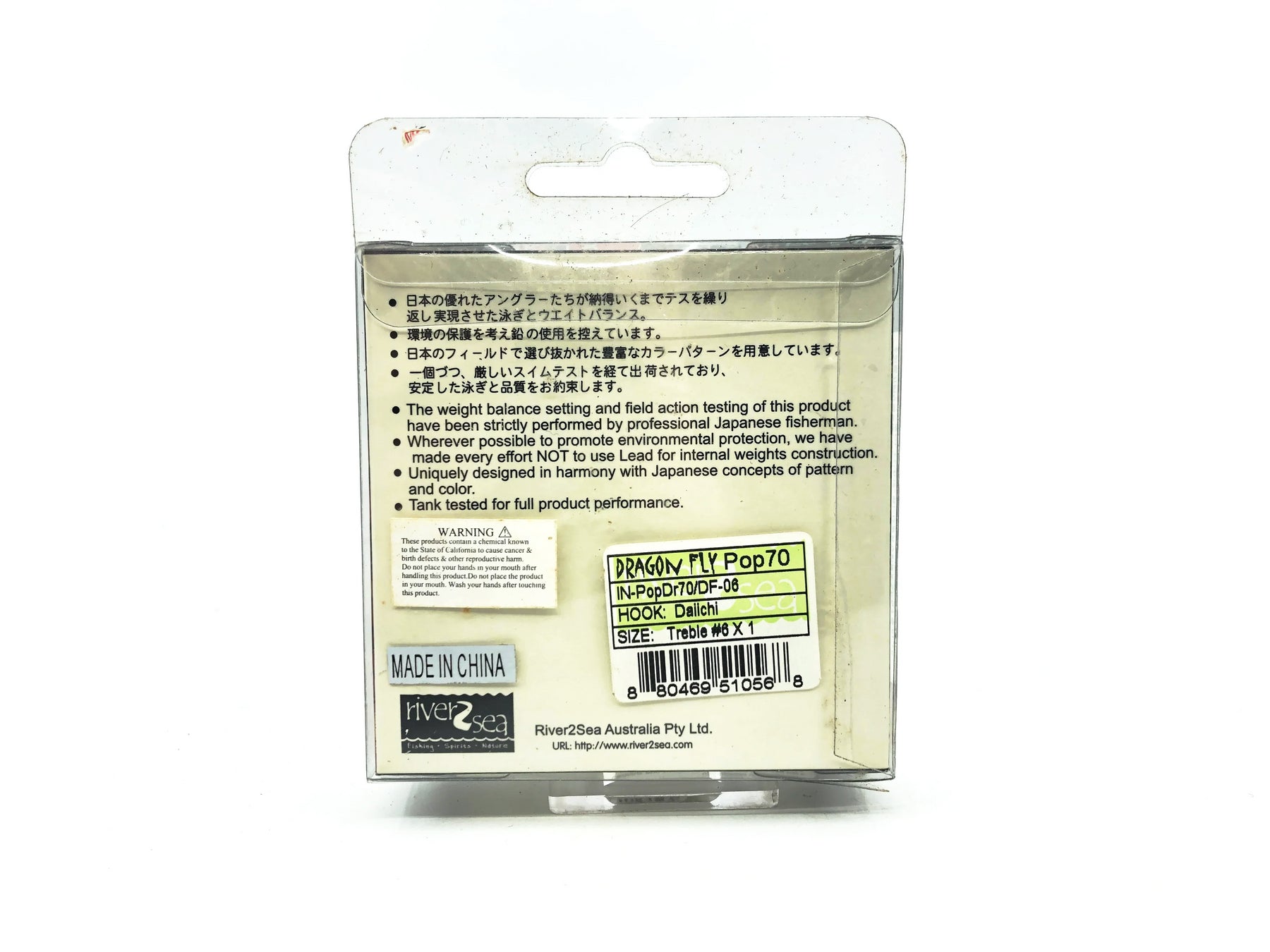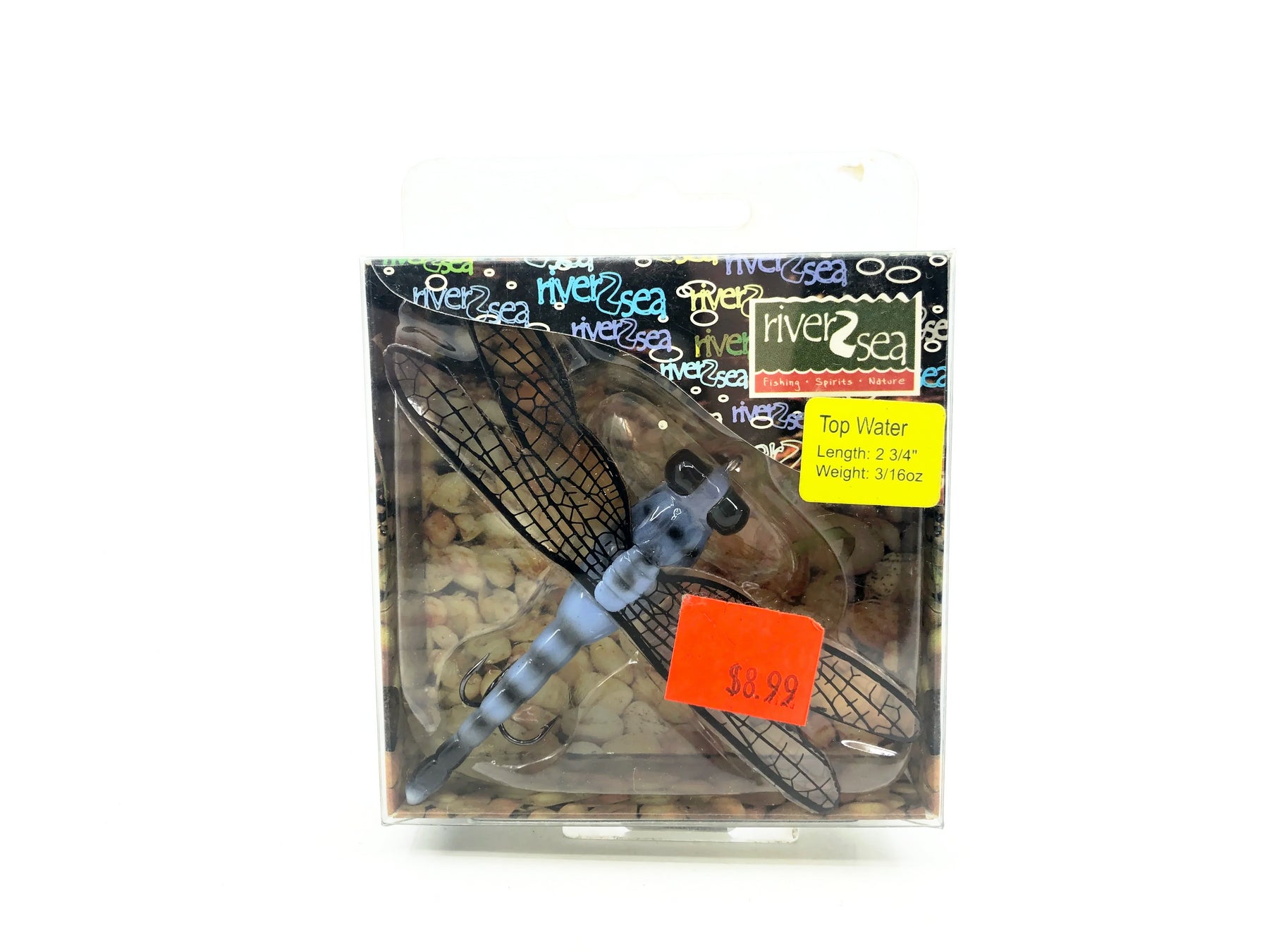 River2Sea Dragon Fly Pop 70, #06 Natural Blue Color New Old Stock. Discontinued surface bait here. Lure is new in box and the box is in good condition. Great deal on a bait perfect for any fishermen.