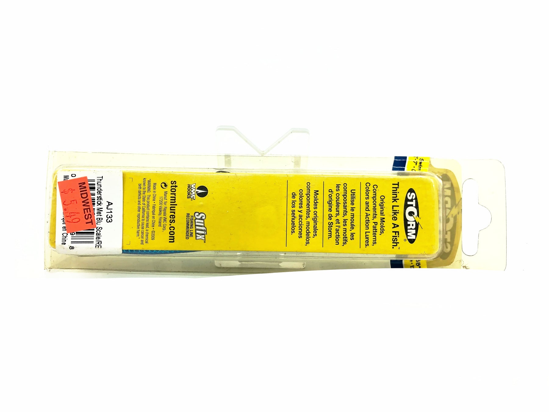 Storm Thunderstick AJ133 Metallic Blue Scale/Red Color w/Box. Older Rapala Storm. Lure is about 4 1/2" long. This bait is new in the package and the box is in overall good condition.. Fish or collect. See photos.