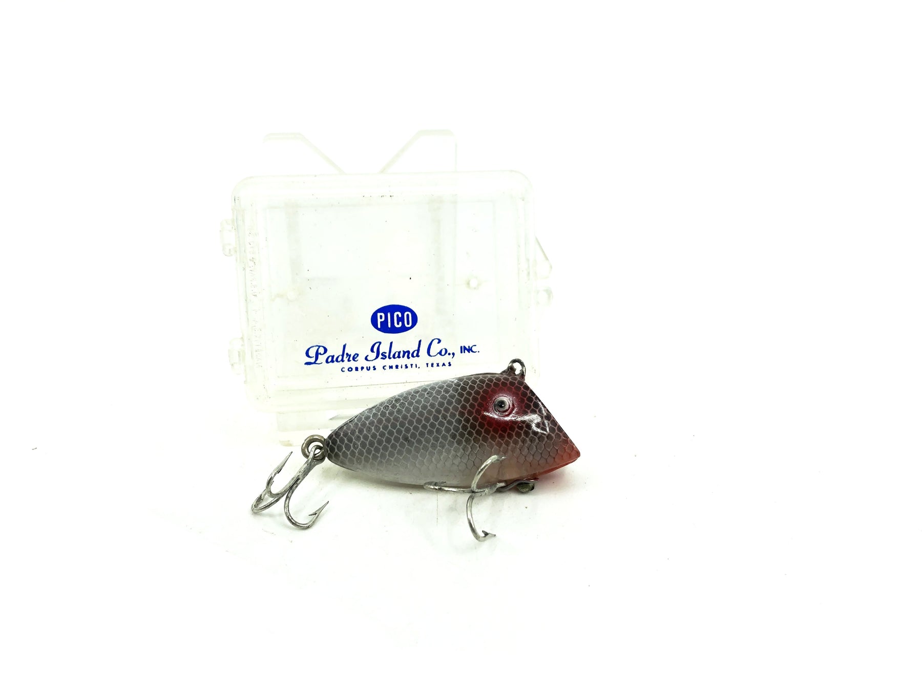 PICO CHICO Perch Series C, Red Eyed Shad Color, With Box. About 1 3/4" long. In great shape, appears to have never been used, but with some wear from age. Box in good shape aside from some minor wear. Grab this one while you can. See photos.