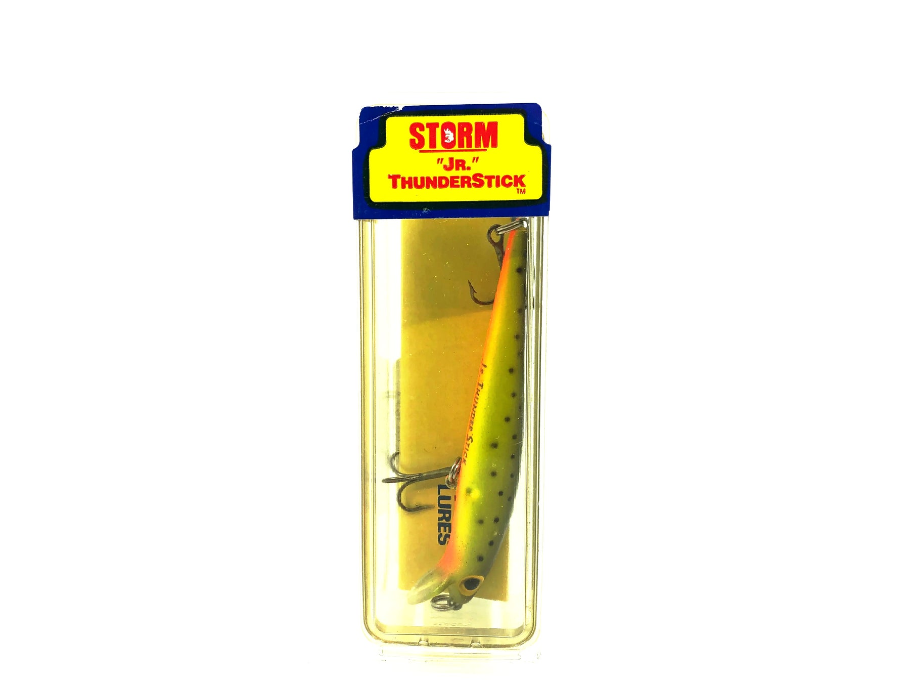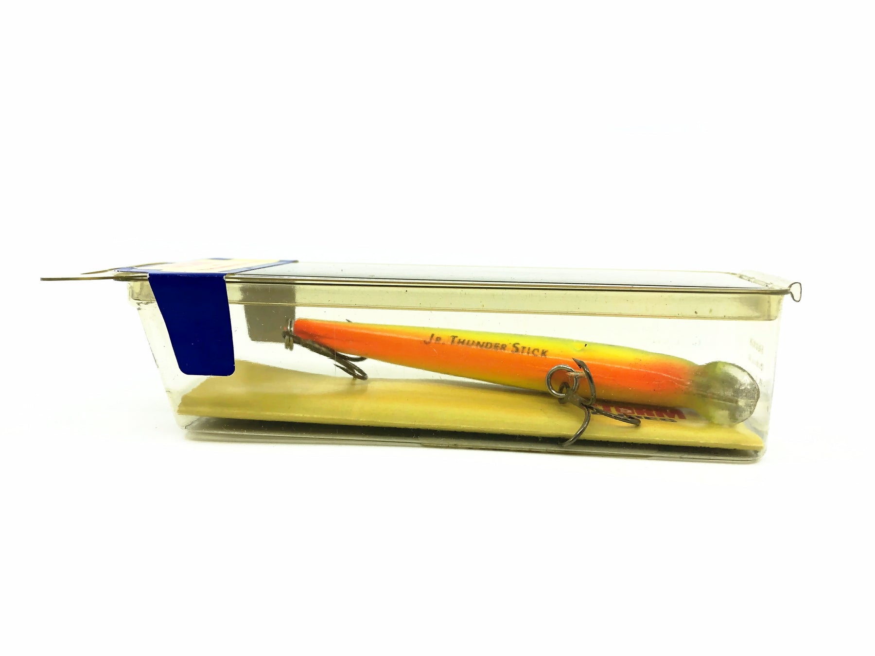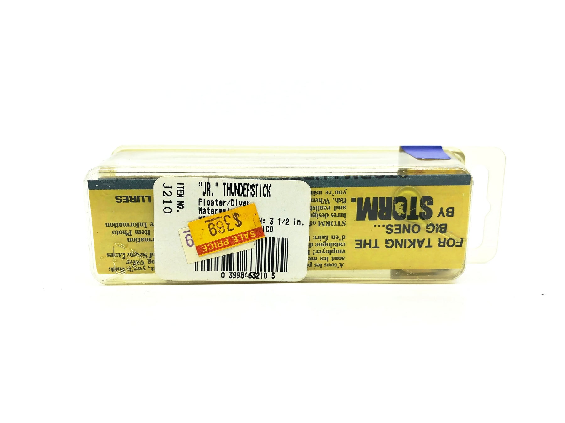 Storm Jr Thunder Stick J210 Watermelon Color w/Box. Great pre-Rapala lure here. About 3 1/2" long. This bait is new in the package and the box is in overall good condition aside from some uv staining. This lure would look great in your collection or tackle box. See photos.