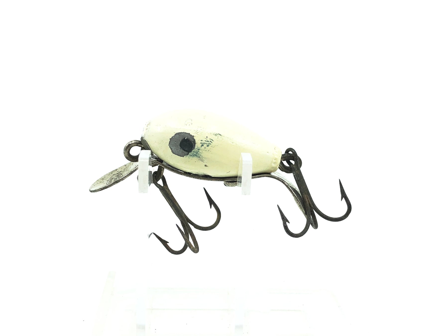 Shakespeare Dopey, Repaint White Color. Harder to find Shakespeare here. About 2 1/4" long. Used lure with some marks, minor wear, and it is repainted white (not 100% sure but am guessing this is repainted based on my review of this lure). Otherwise in overall ok condition, see photos. Fish or collect. Would be a great way to fish a classic.