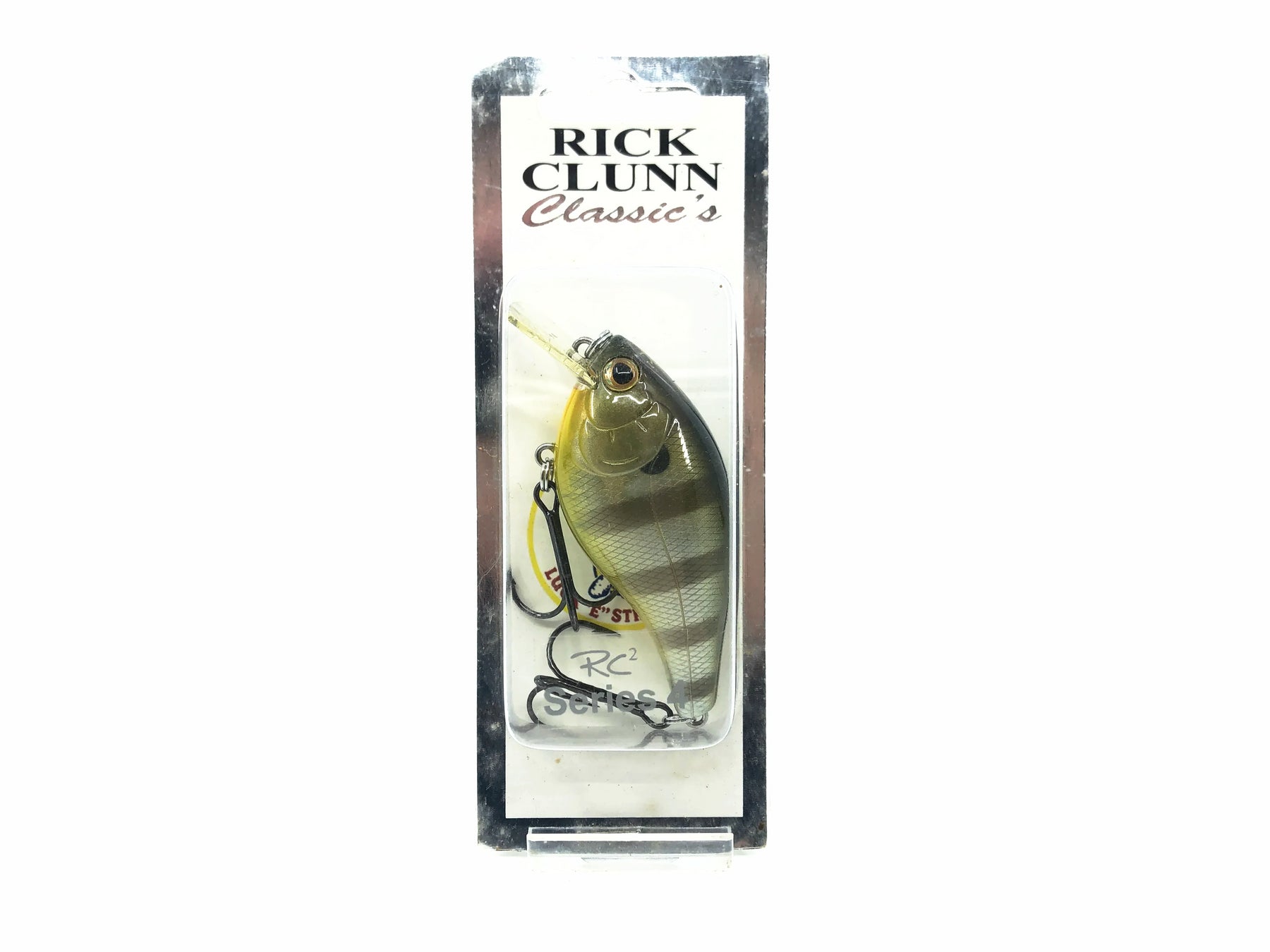 Rick Clunn Luck-E-Strike RC Series 4, Sunfish Color on Card. About 2 3/4" long excluding the lip. This lure is new on card and the card is in good condition. Quality lure from fishing legend Rick Clunn. Great lure to fish or collect. See photos.