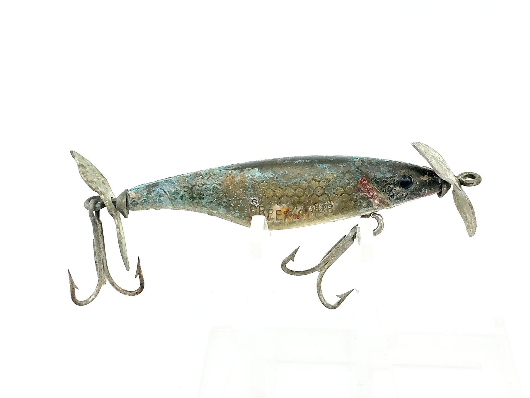 Creek Chub Streeker, S-Series Golden Shiner Color. Uncommon Creek Chub here. About 2 1/2" long. Used with quite a bit of wear and waxing but overall fair condition, see photos. Great classic bait from the former Creek Chub Bait Company.