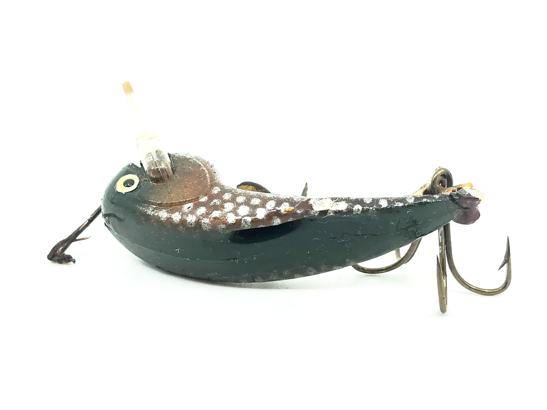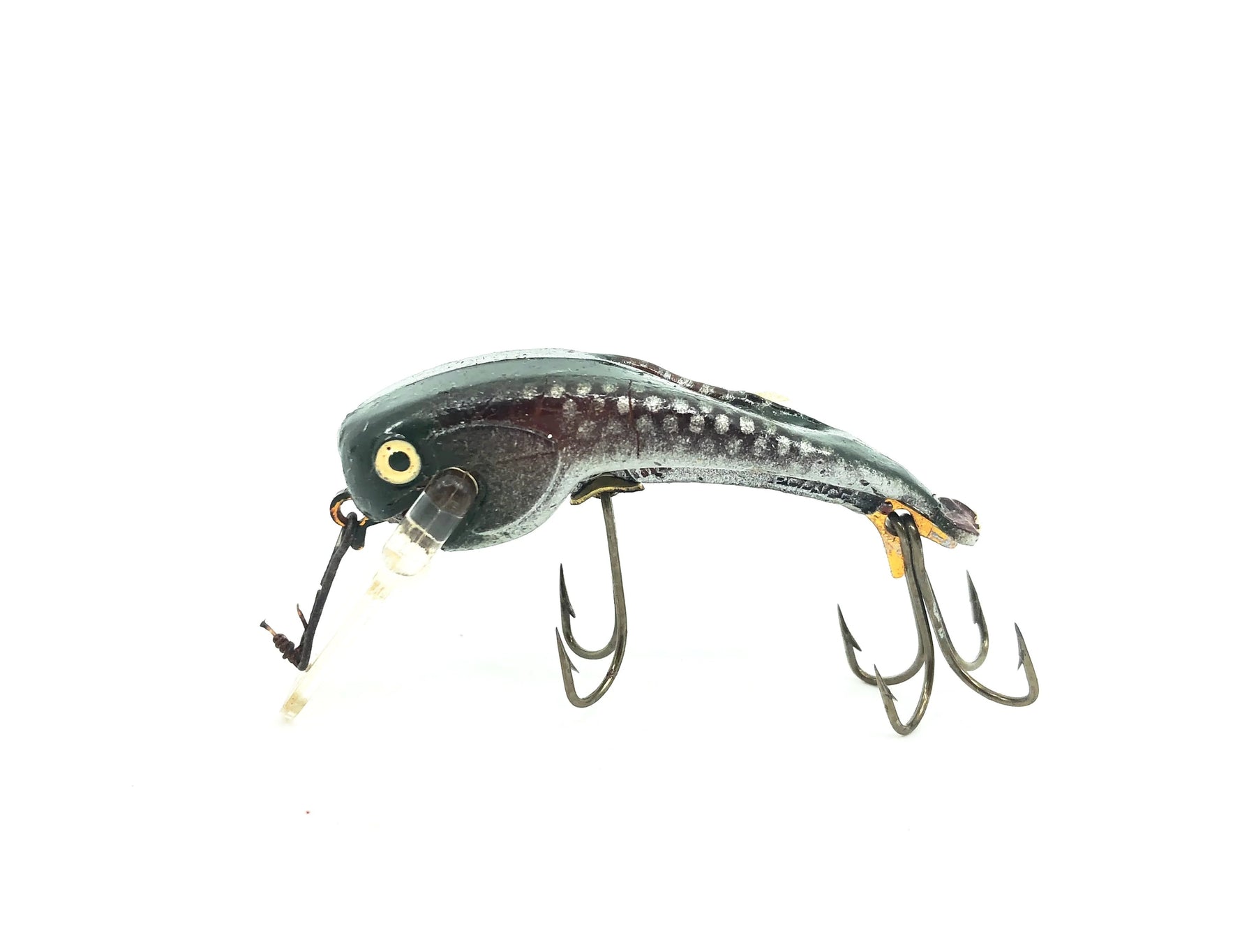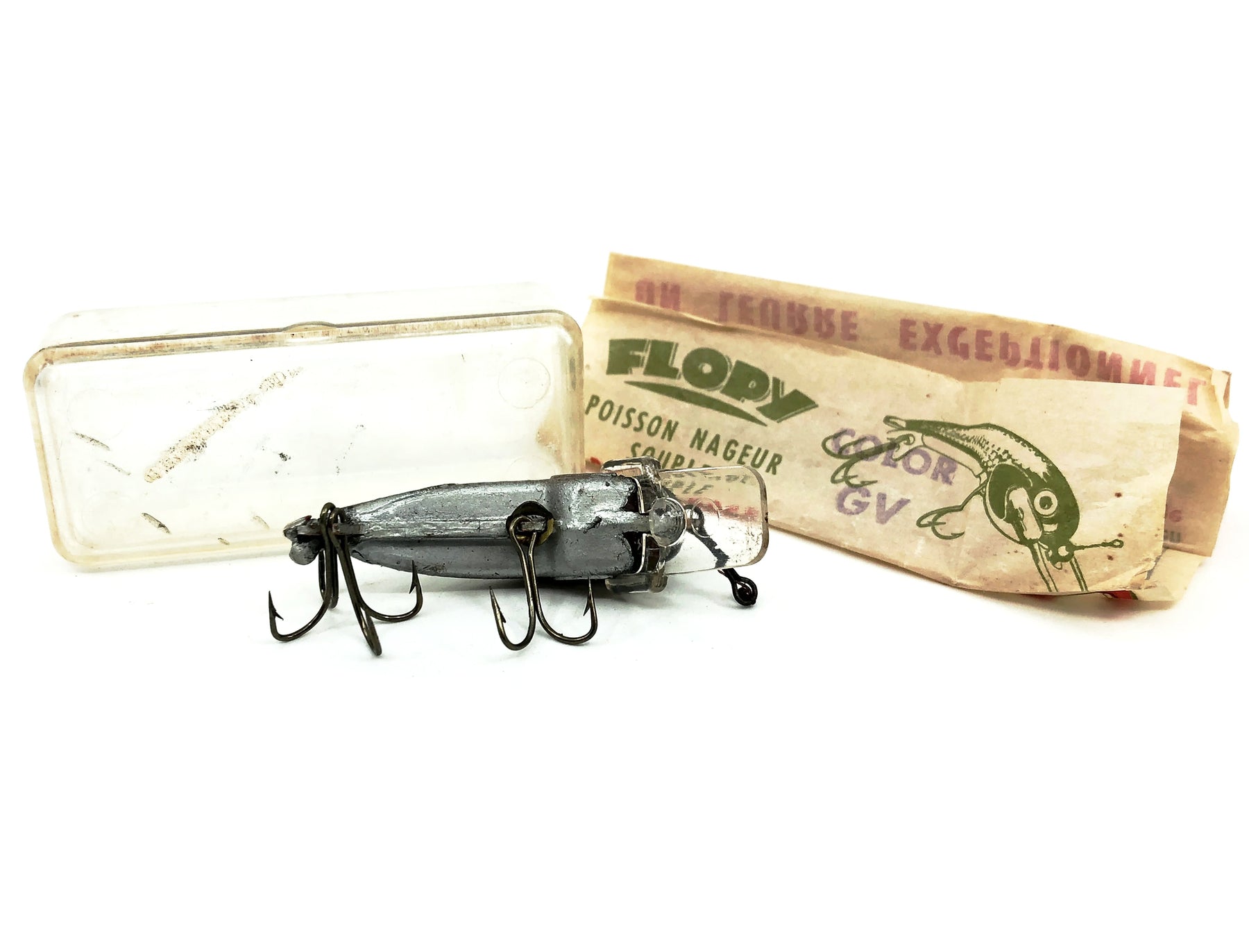 Rublex Floppy, Black/Silver Scale w/Box & Paperwork. Hard to find the box and the paperwork for this lure. Lure has some damage to the body but in otherwise good condition. Box and paperwork are in good condition as well. About 2" long including the lip. See photos.