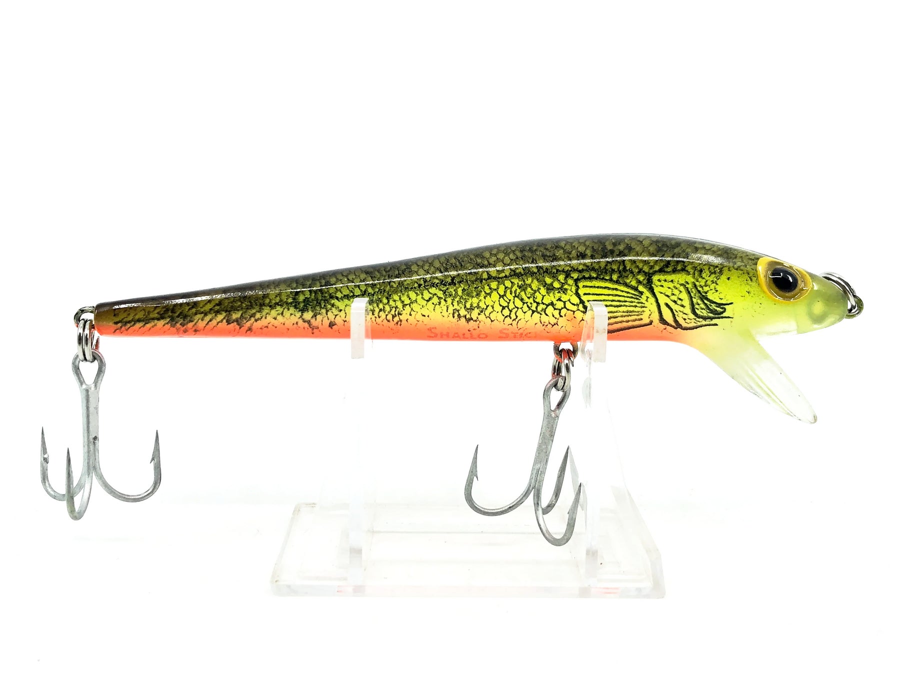 Storm Shallo Stick, #60 Naturistic Perch Color. Unique pre-Rapala Storm here. Lure is about 5 1/4" long. Lure is used with some minor wear but in overall great condition. Fish or collect. See photos.