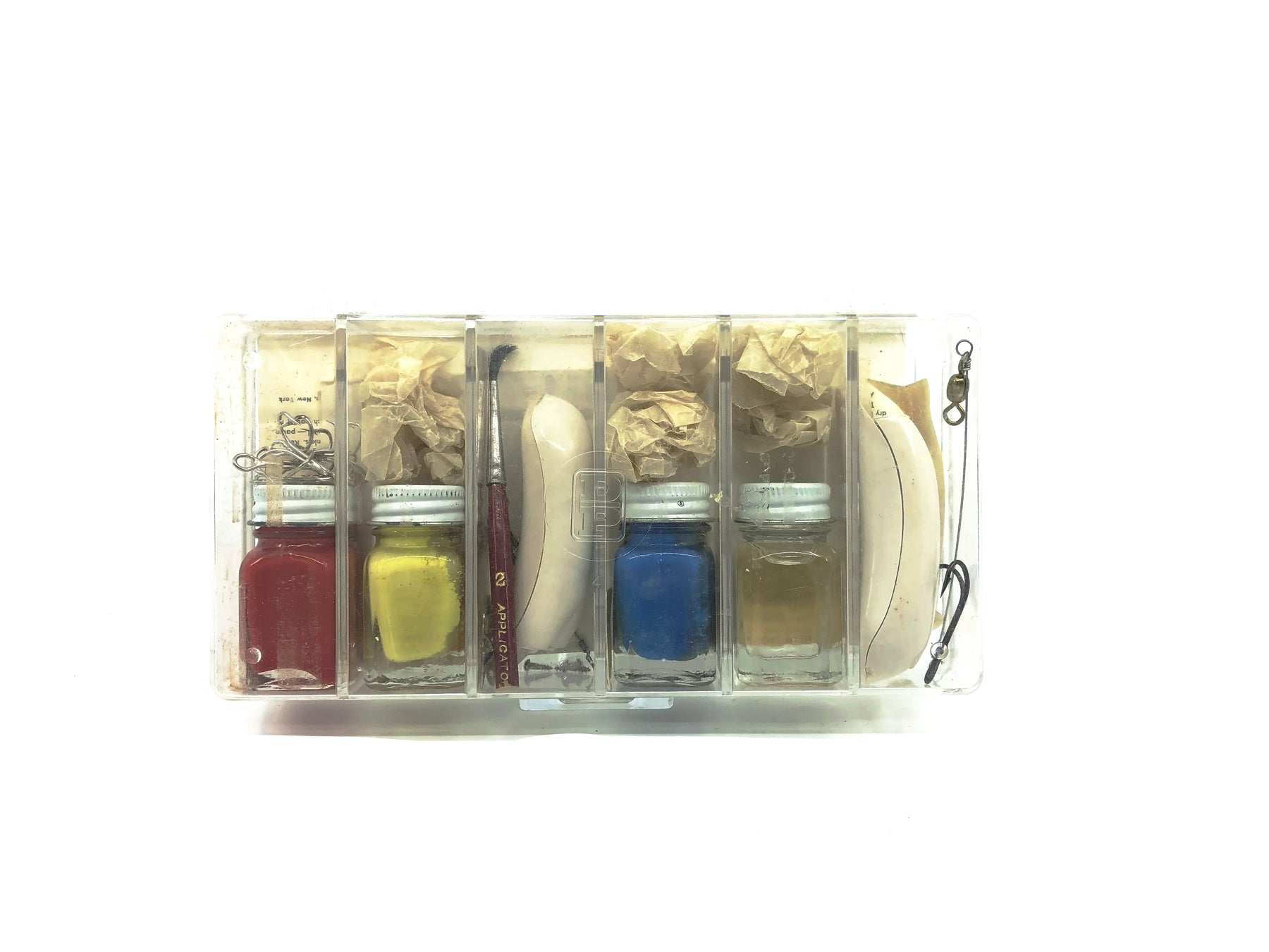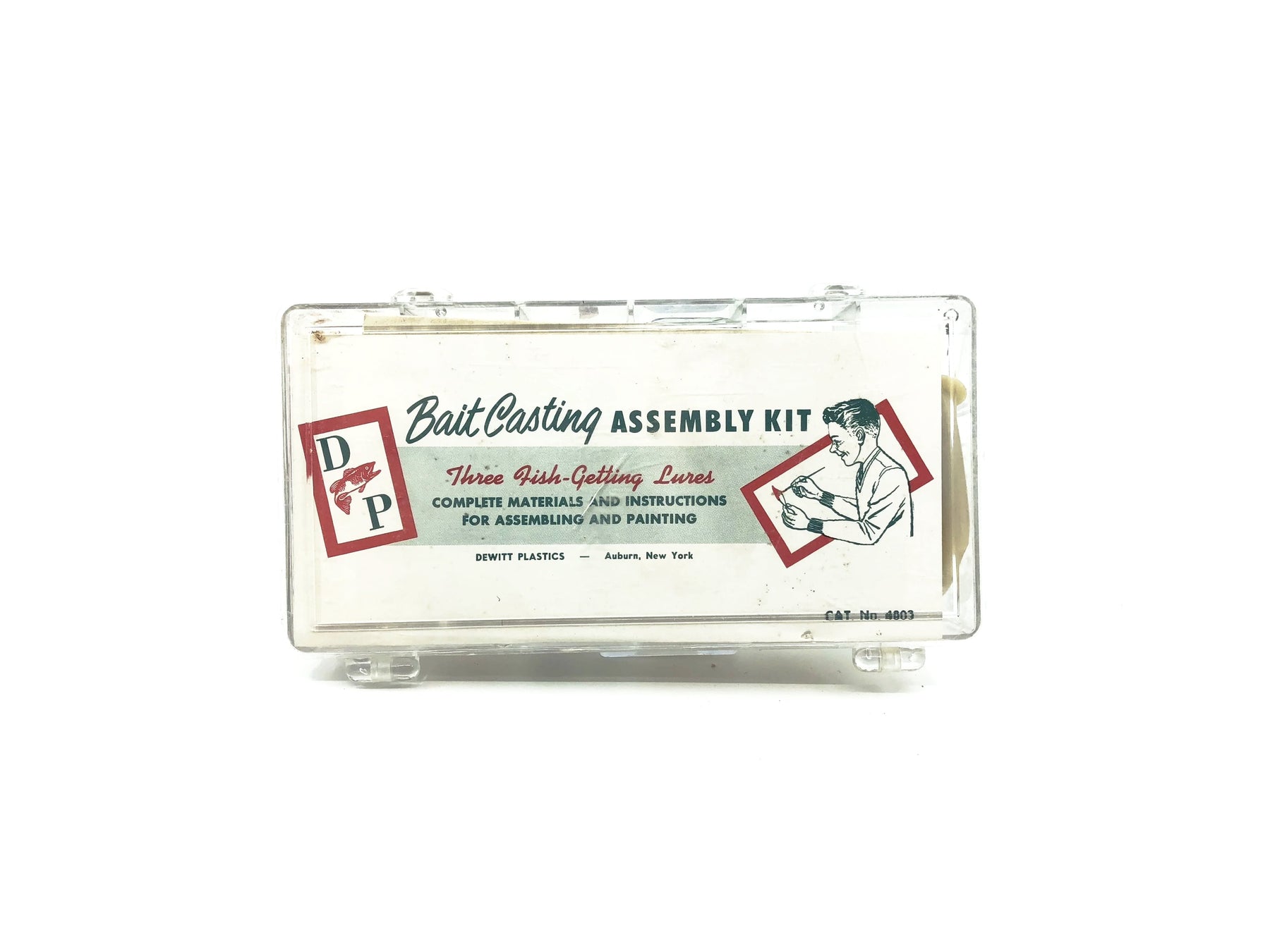 Vintage D&P Bait Casting Assembly Kit. Great find here for any collector. This kit was intended for the Boy Scout of America and upon competition a merit badge was rewarded. This is most likely from the late 60's-70's due to the manufactures name. It contains three tenite plastic lure bodies as long with the required hardware and paint.  This kit is unused and it great condition, aside from the paint going bad.