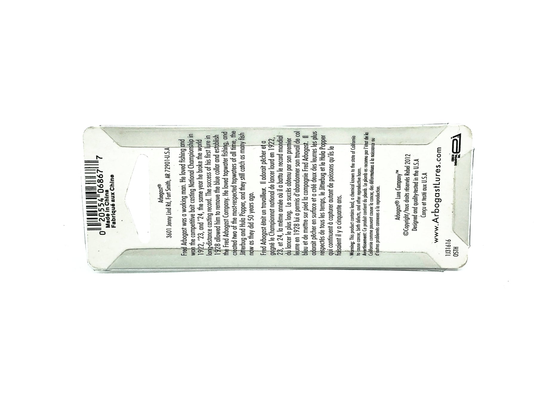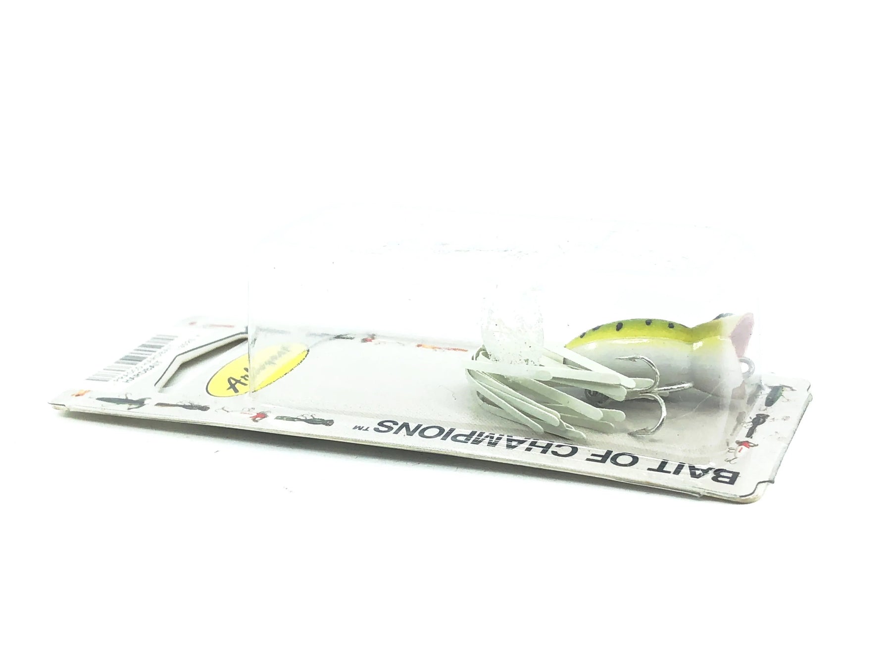 Arbogast Hula Popper G730 Frog/White Belly Color on Card. Old stock lure here from around 2012. Bait is about 1 1/4" long. Lure is new on card and the card is in good condition. See photos.