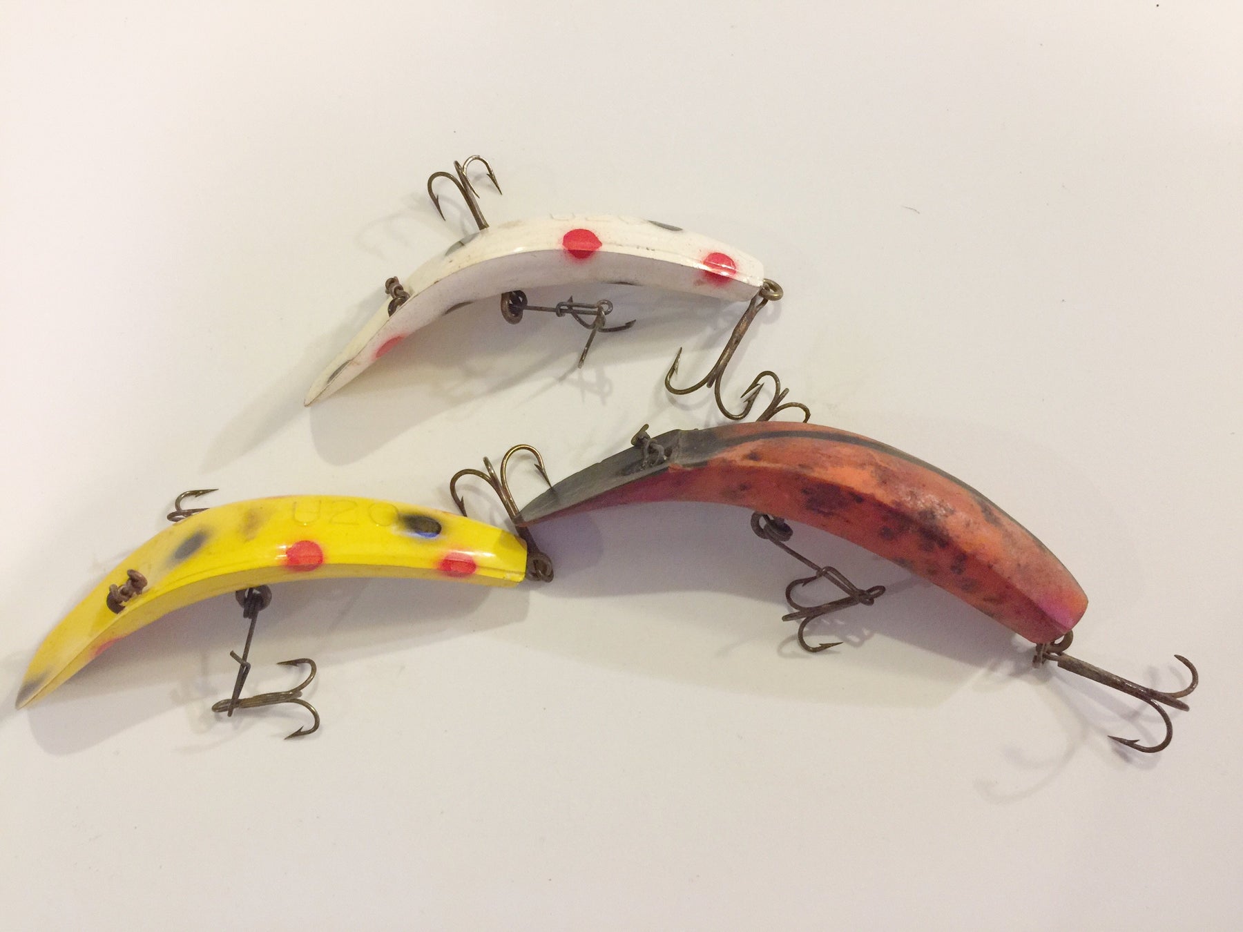 Helin Flatfish U20 Lot of Three.  Yellow and White ones are U20, other is S3.  Used but decent shape, see photos.  Great to cast or troll.