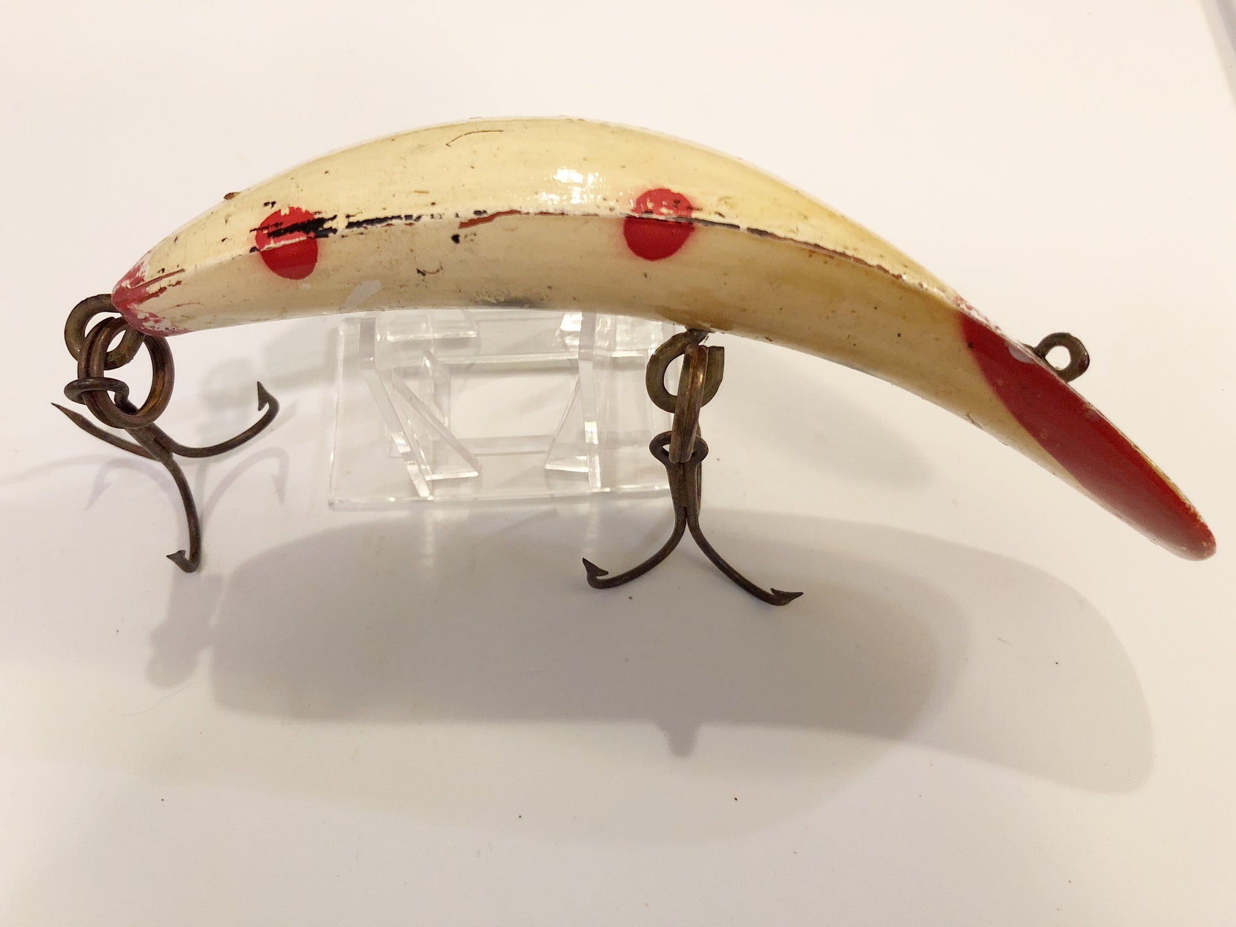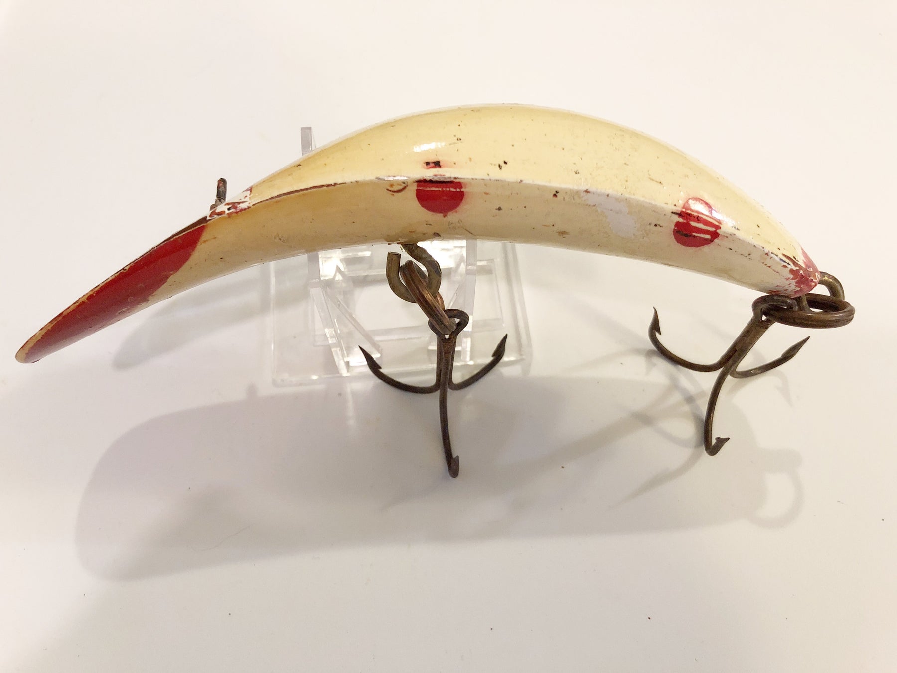 Huge Musky Sized Helin Flatfish T 60.  Huge flatfish here.  About 6" long.  Used with some wear as photos show but still decent.  Great to fish or collect.  Give this old lure a new home. Don't see these huge size flatfish very often.
