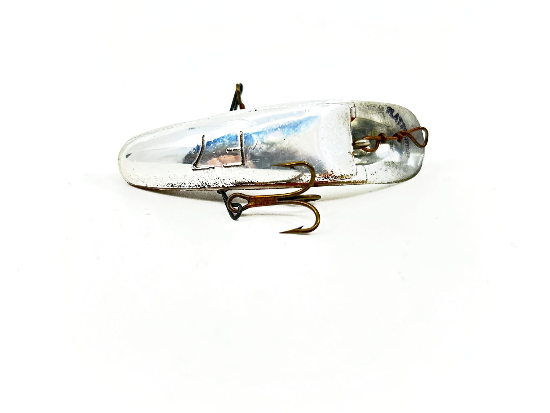 Helin Flatfish F7, Silver Plated Color. About 2 1/2" long. Used with some wear but overall good condition, see photos. One of the most successful fishing lures ever made. Fish or collect! Vintage plastic version.
