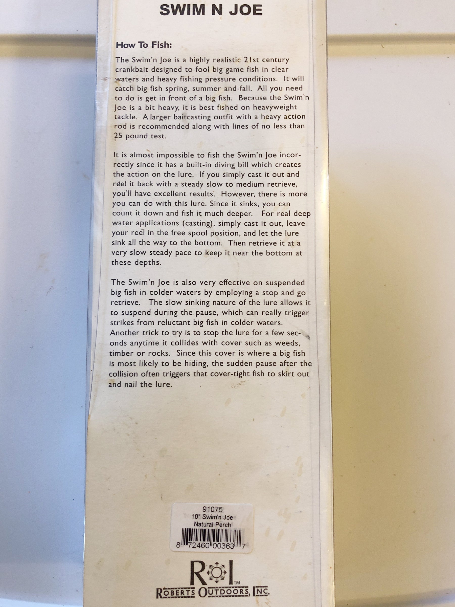 Joe Bucher Swim'N Joe 10" Natural Perch Lure New on Card