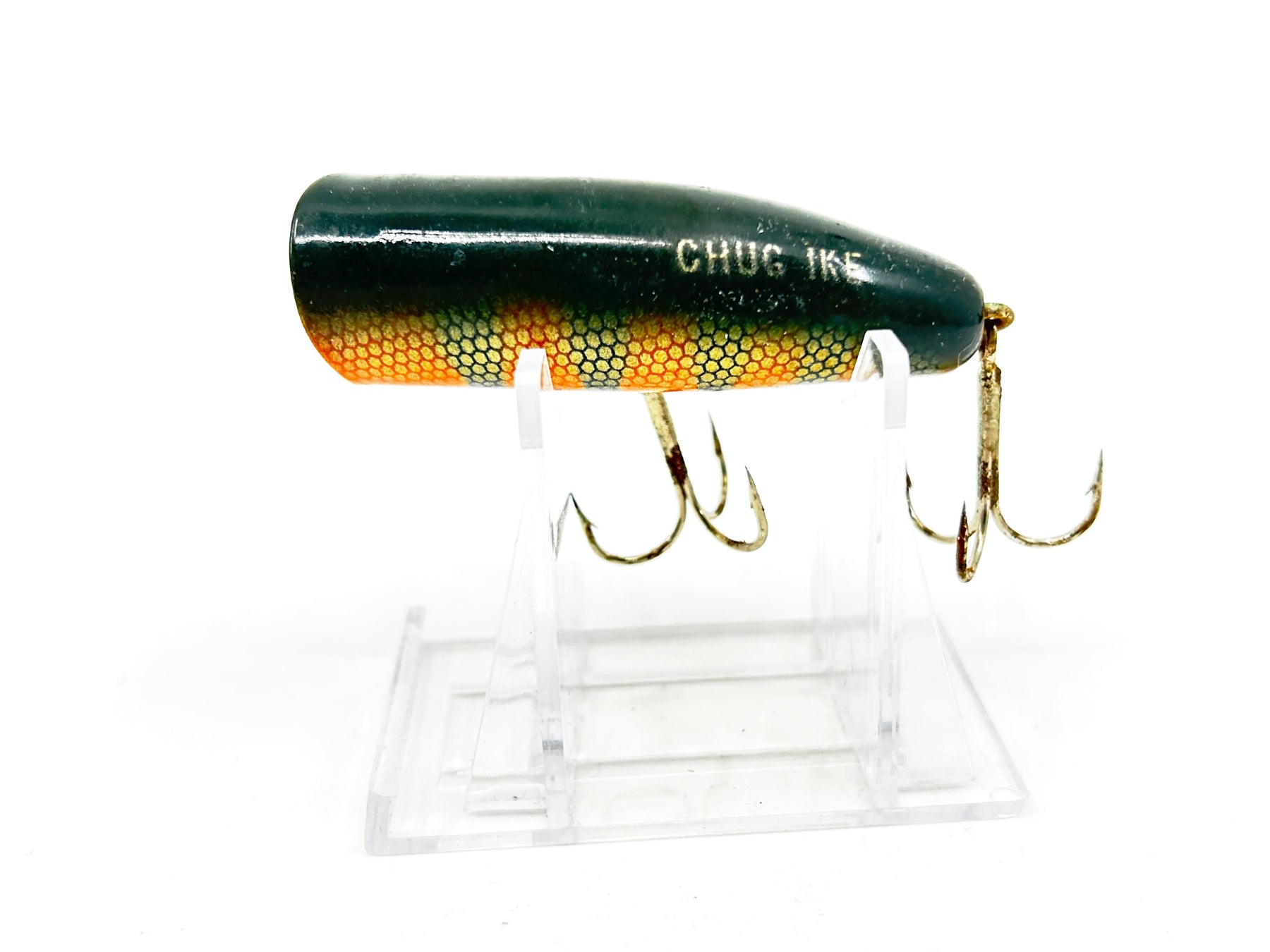 Kautzky Lazy Ike Chug Ike Lure Perch Color. Great vintage lure dating to somewhere in the 1950's or early 60's. About 2 3/4" long. Used with some wear but overall in good condition and may clean up better, see photos. Great classic lure here. Fish or collect.