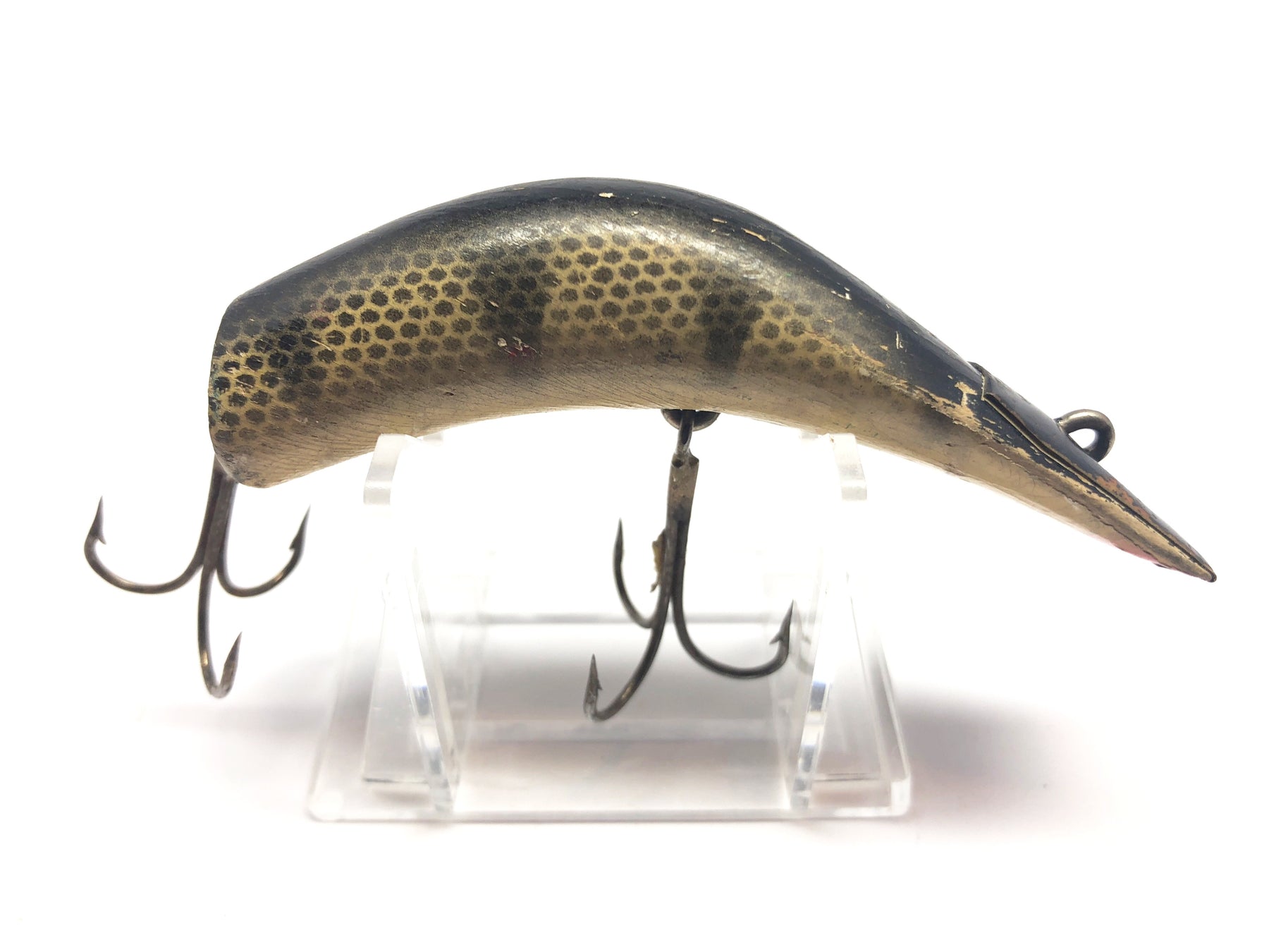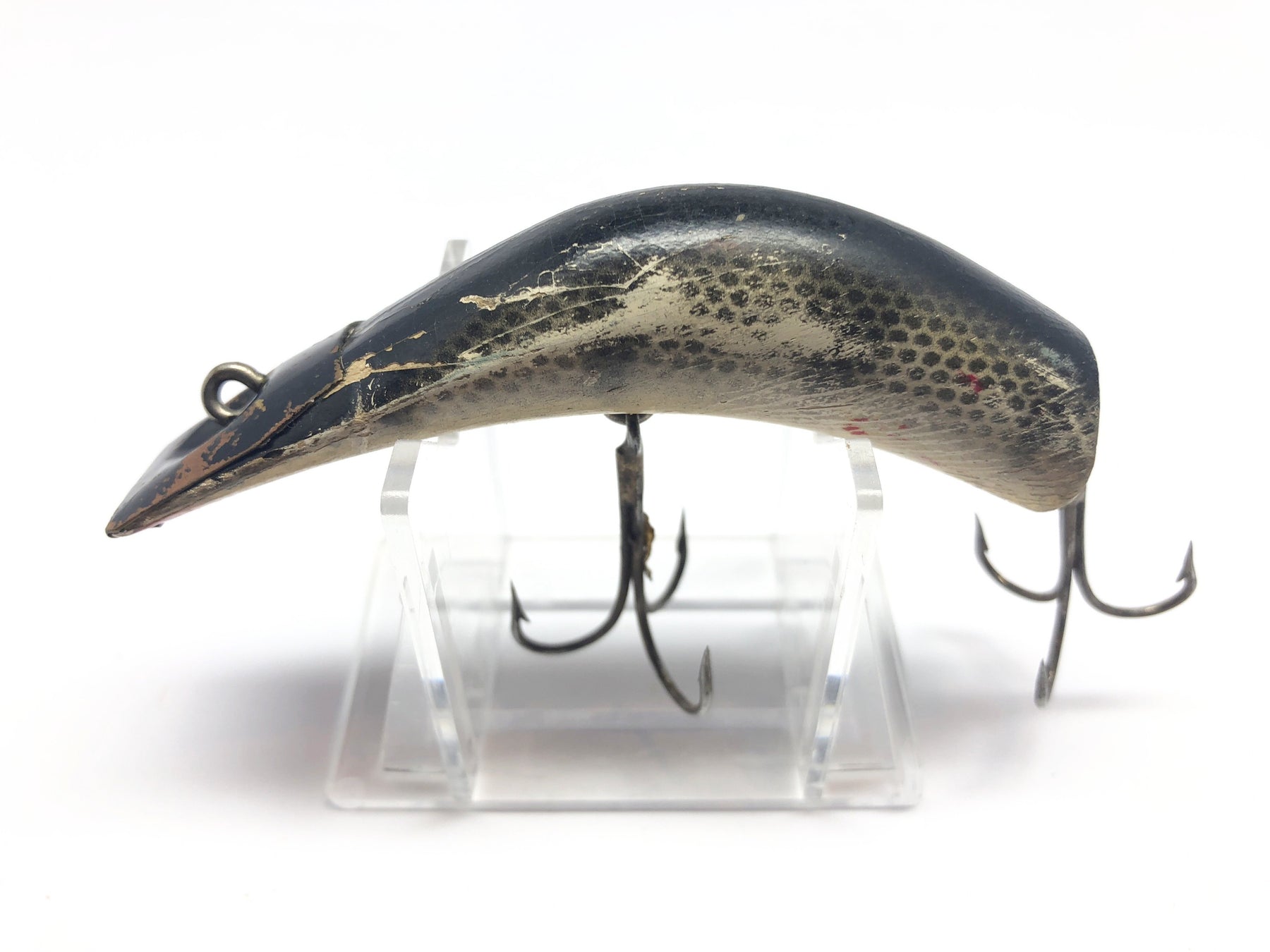 Kautzky Lazy Ike 4 Wooden Lure Black Rib and Scale. Here's a tougher one to find. This one is used with some wear but overall ok shape, see photos. Fish or collect!