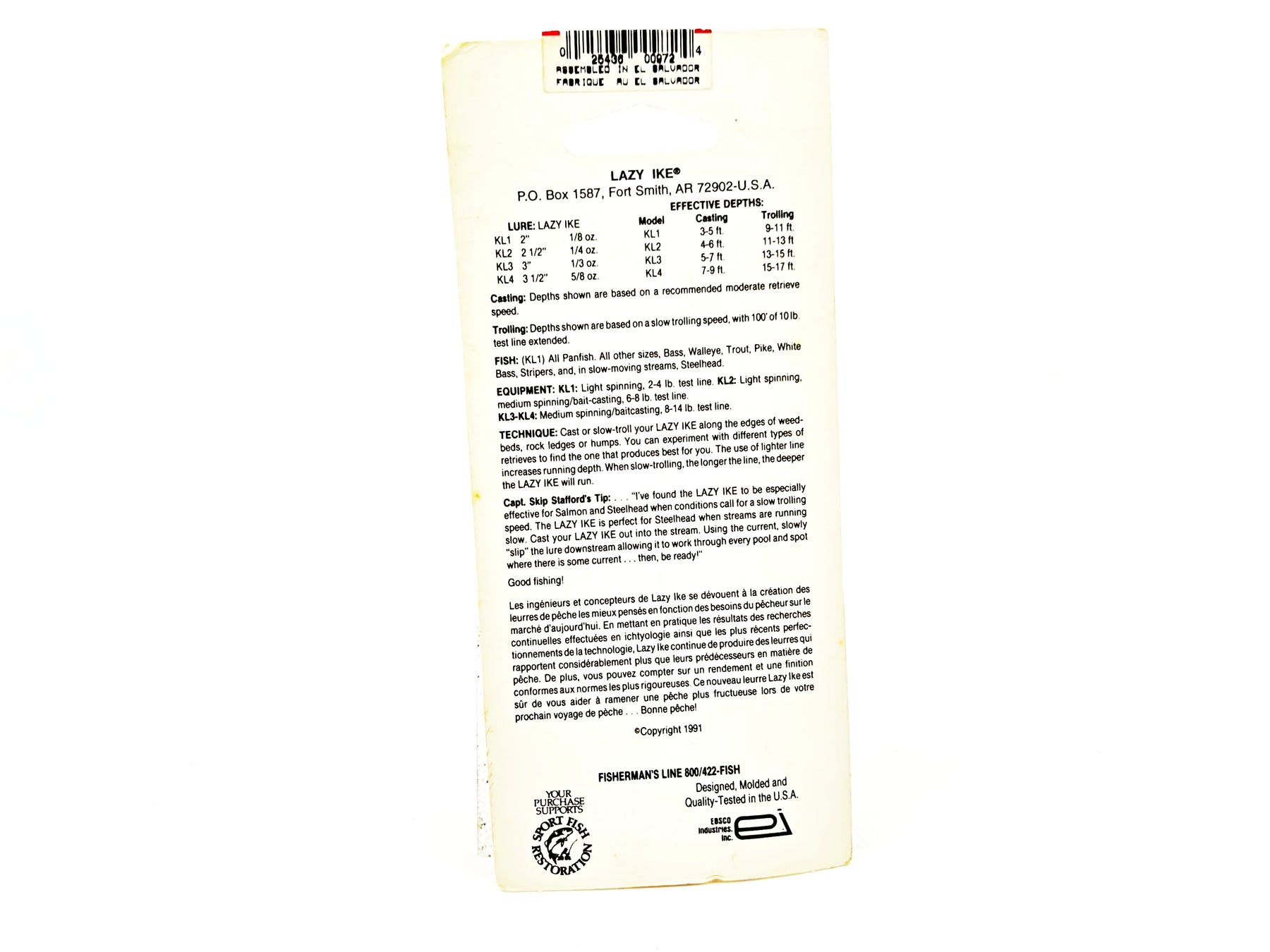 Lazy Ike IKL3YS Yellow Spot Color New on Card Old Stock. About 3" long. Card has some minor wear and tape on it. Lure is new inside. These haven't been made in several years and are becoming very difficult to find. This one dates to from around 1991/92 when first acquired by PRADCO. Grab for for your tackle box or collection. Of the all-time greatest lures ever made. Cast or troll you can't go wrong with a Lazy Ike!