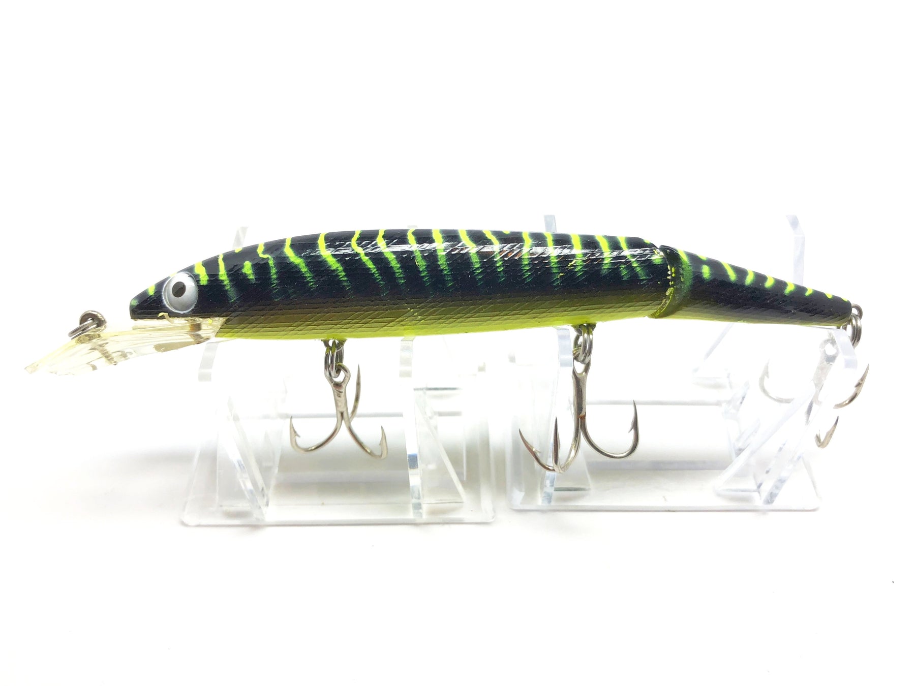 Vintage Rebel Fastrac Jointed Minnow Black Lime Green Tiger Stripes Color