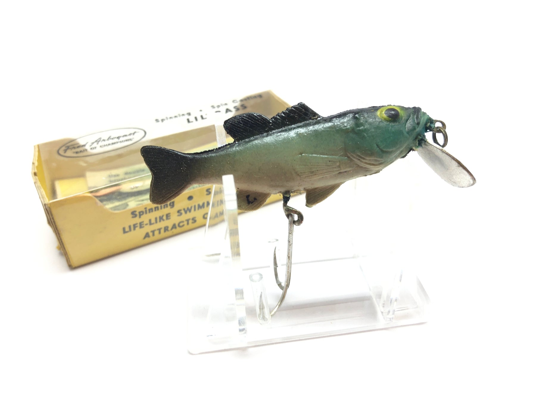 Vintage Arbogast Lil' Bass with Box.  Great vintage lure here.  About 3" long.  Used but overall good condition, see photos.  Tough to find these little guys.