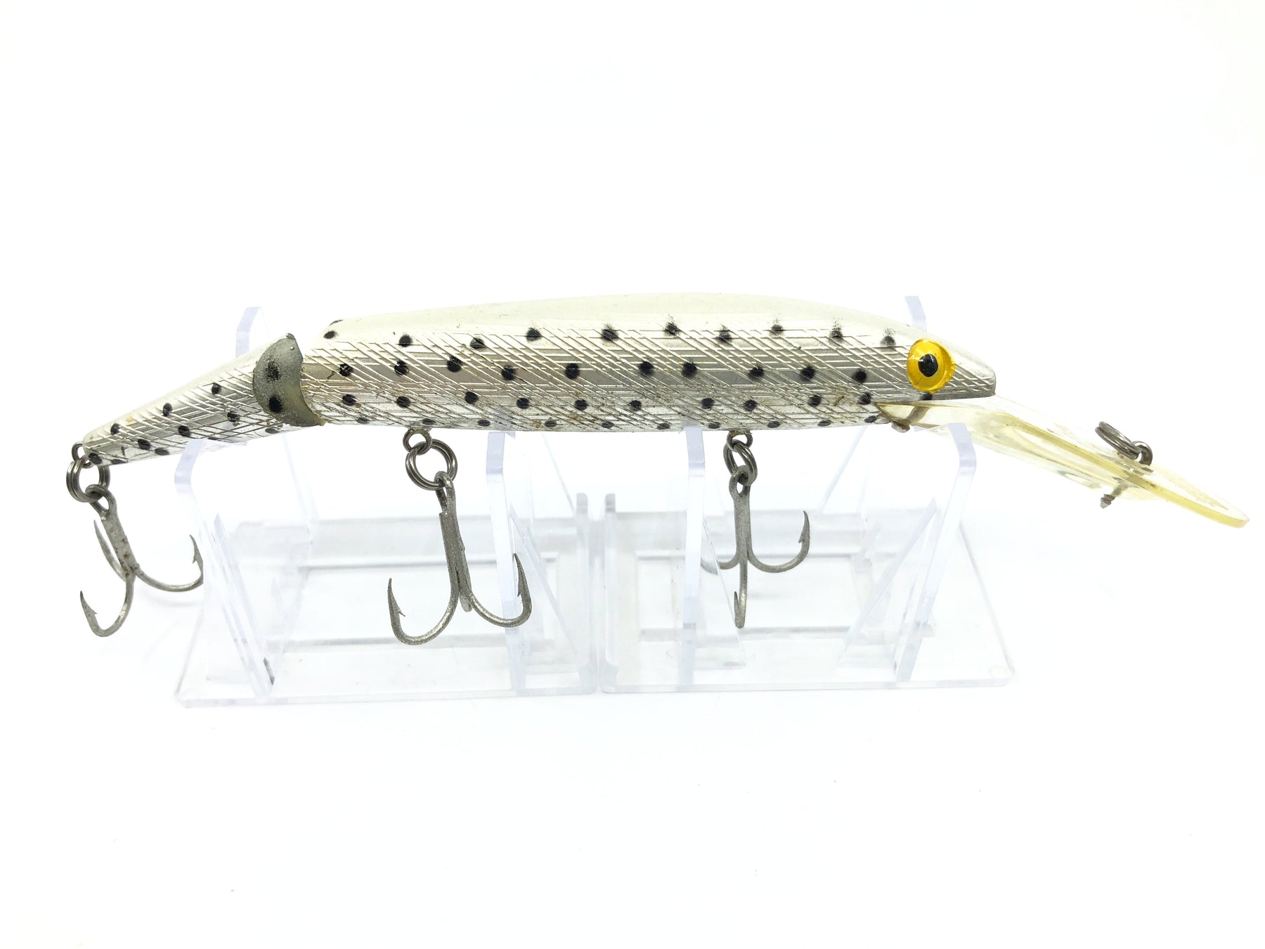 Vintage Rebel Spoonbill Jointed Minnow Polka Dot Pattern.  About 5.5" body excluding lip.  Used but good condition, see photos.  Beautiful baits great for fishing and becoming very collectible.  Nice color.
