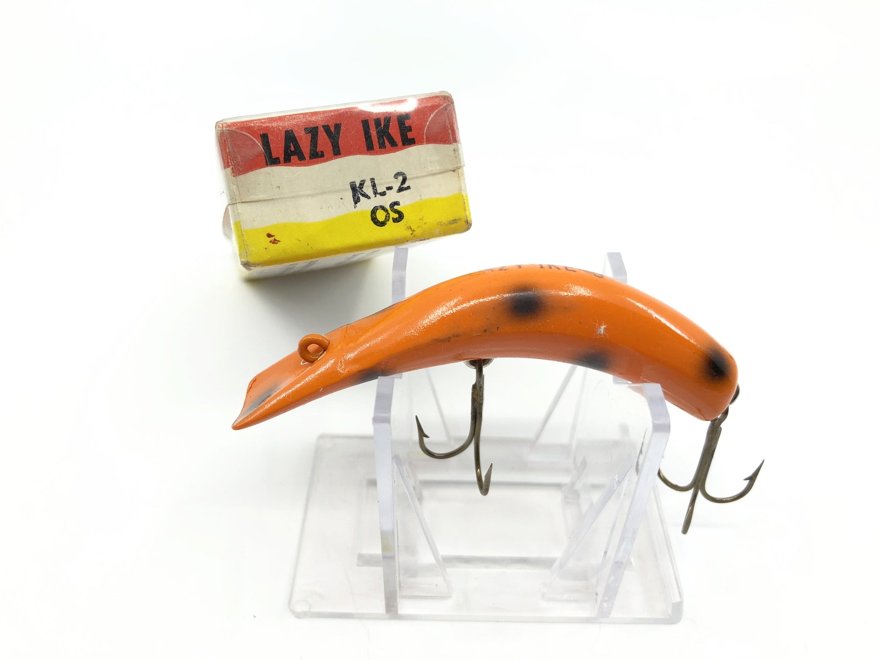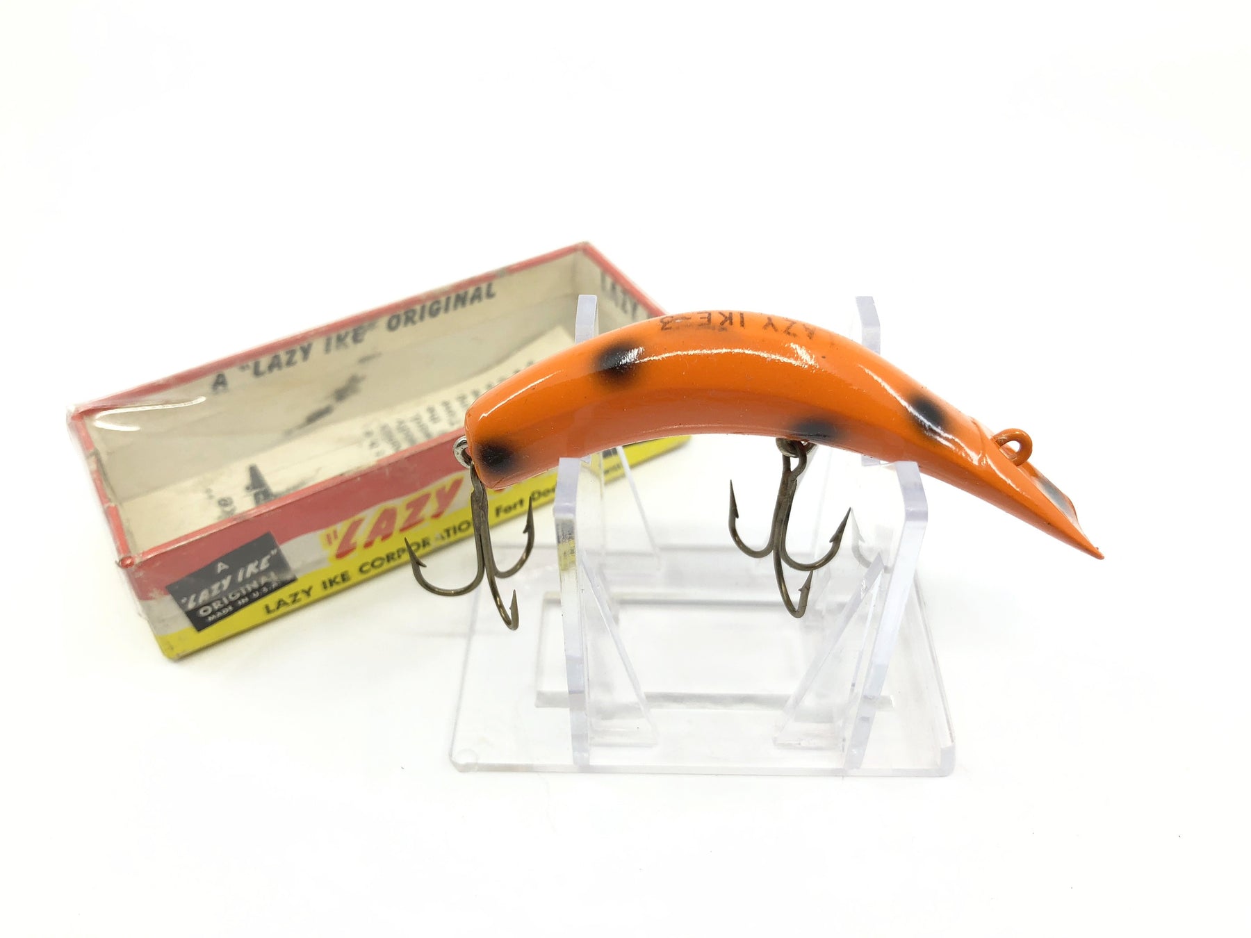 Lazy Ike 3 Orange with Black Spots New with Box.  About 3" long.  New in box, incorrect box, see photos.  One of the all time great lures.  Get this vintage bait and go catch some fish or display in your collection.