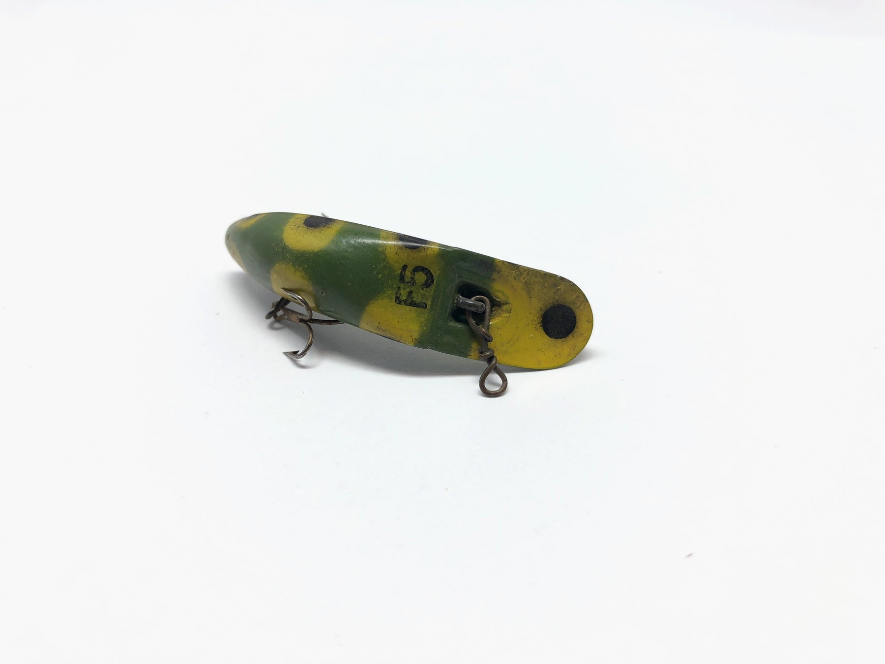 Helin F5 Flatfish FR Frog Color.  Great vintage lure here.  Nice little lure.  Used but in good condition, see photos.  Tough to find these smaller sizes.  Great for fishing and oh so many colors to collect.