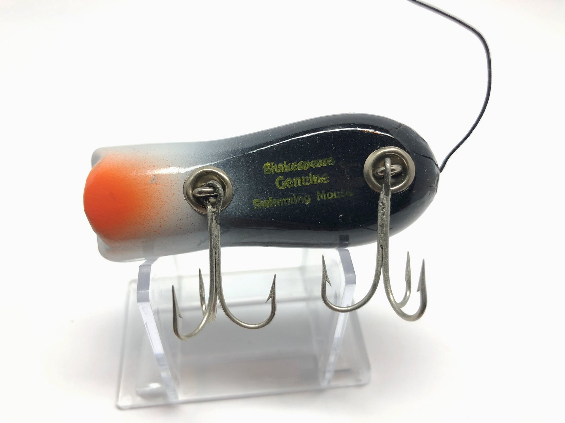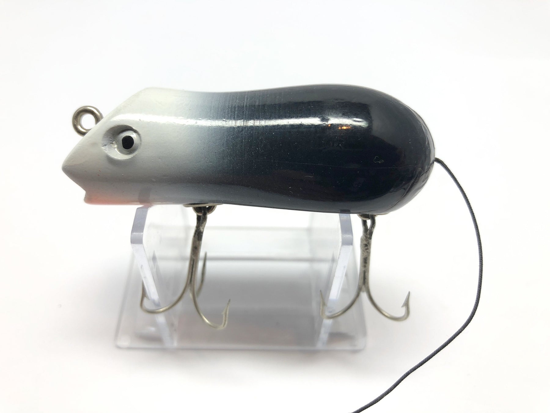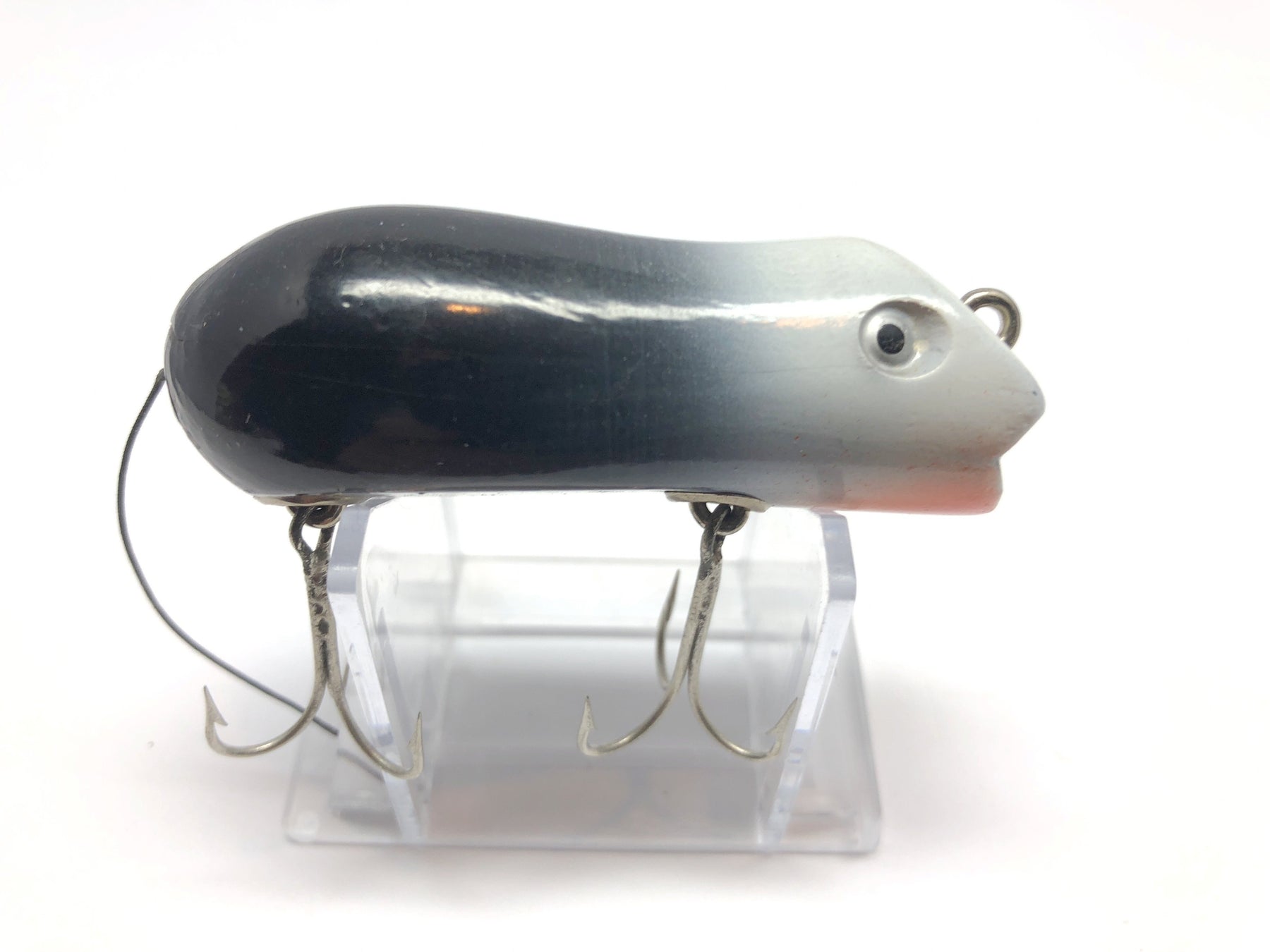 Shakespeare Wooden Genuine Swimming Mouse White and Black Color.  About 3" long.  Used vintage lure, appears unfished.  Great condition, see photos.  Great lure to fish or collect!  You don't find them this nice very often.