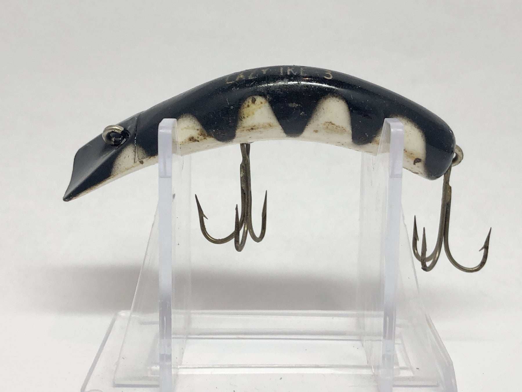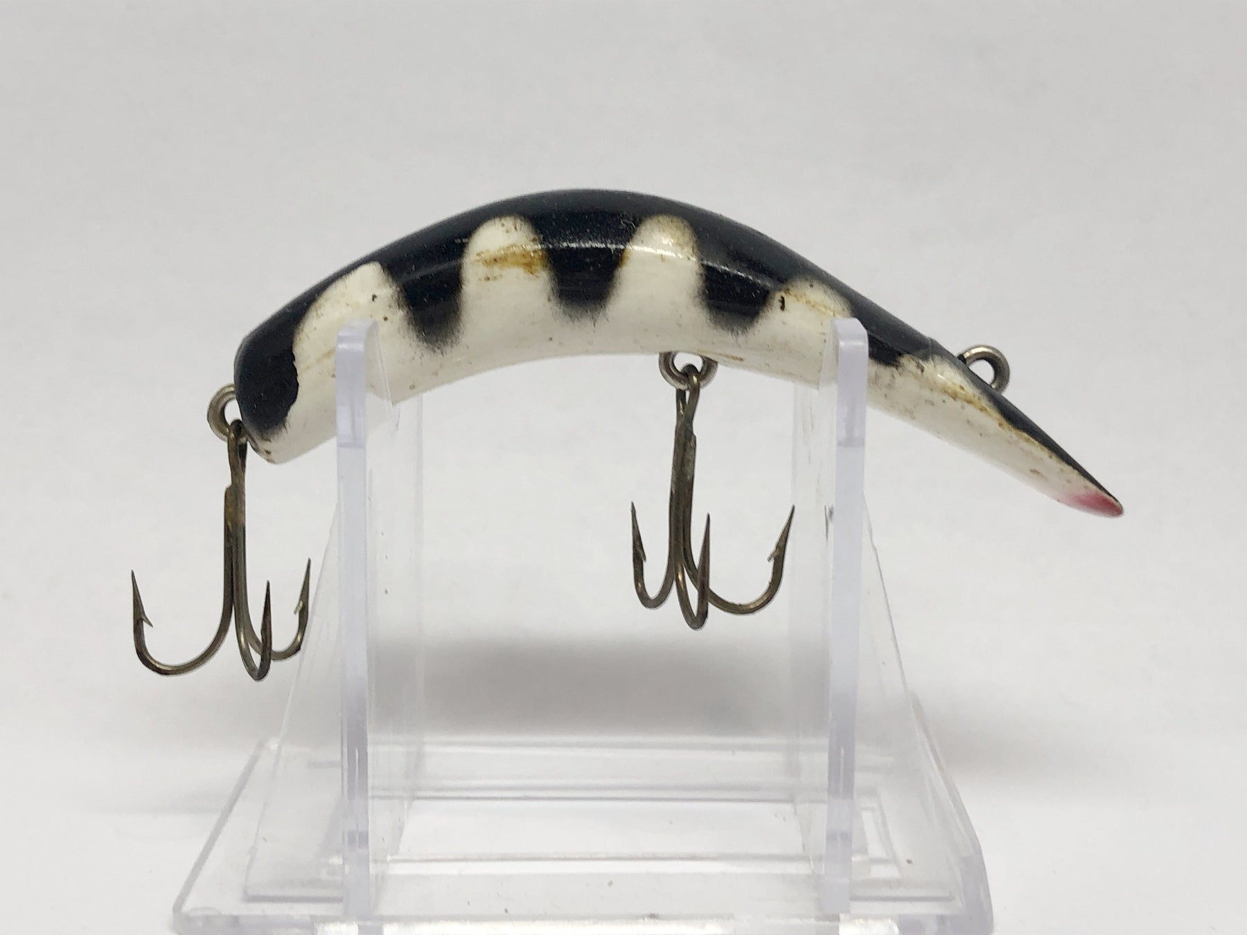 Kautzky Lazy Ike-3 Black and White Rib. At about 3" this lure is in ok condition. See photos.