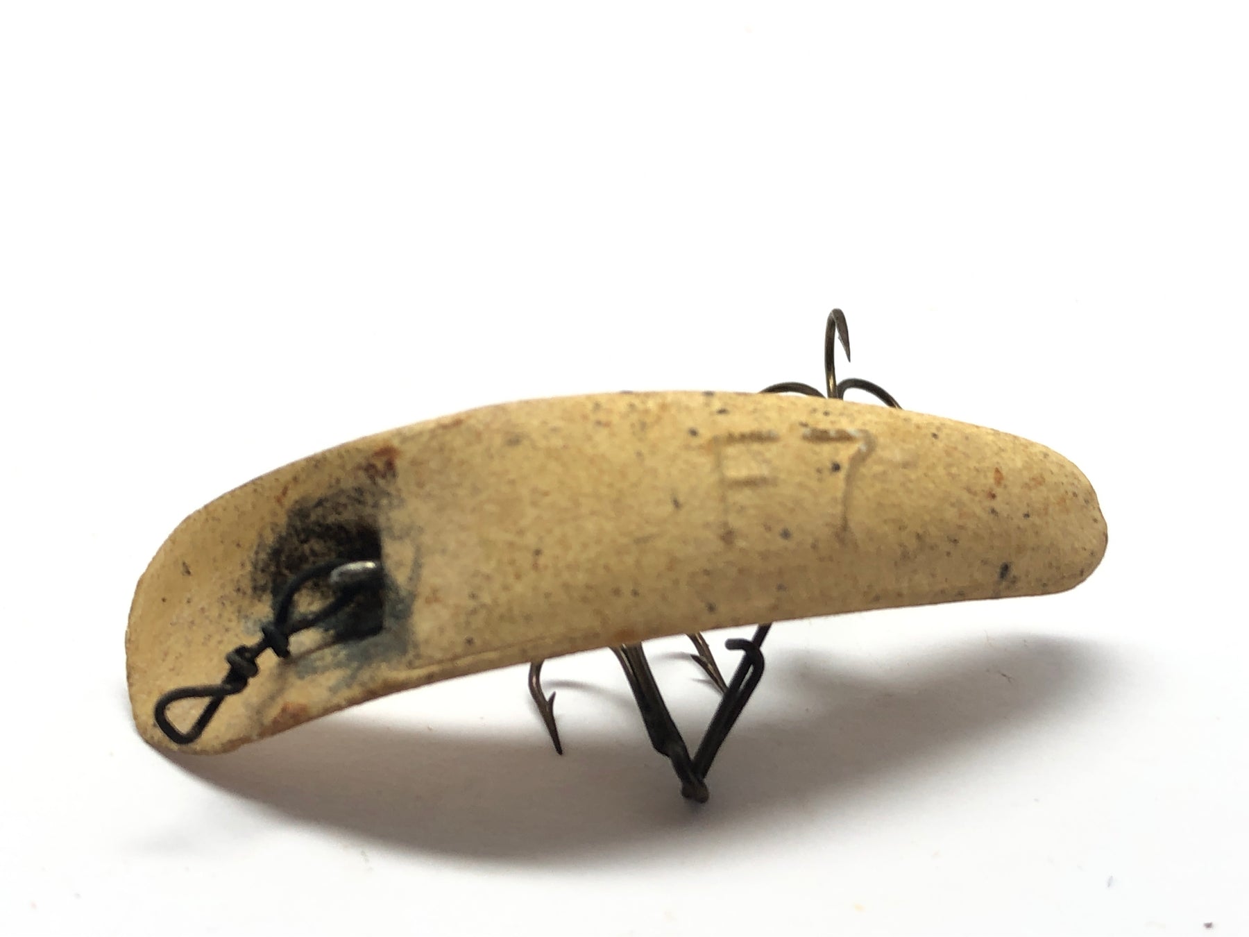 Helin Flatfish F7 Pearl. At about 2 1/4" long this lure has a weird paint job and look like it is in ok condition. See photos.