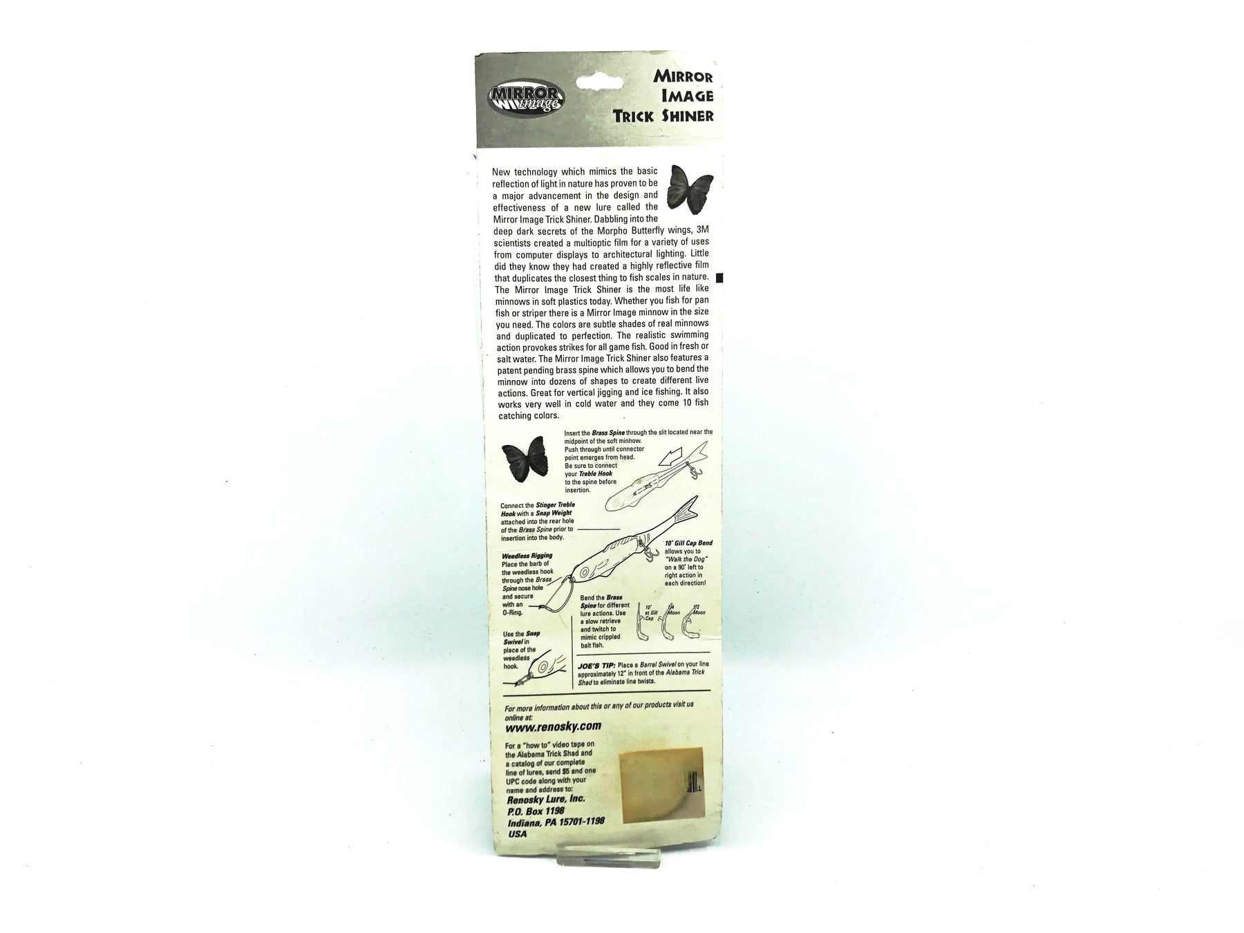 Renosky Mirror Image 9" Trick Shiner, Chartreuse/Brown Color on Card. Great softbait here. About 8 1/2" long. Great discontinued lure from Renosky Lures in Indiana, PA. Tough to find these lures.