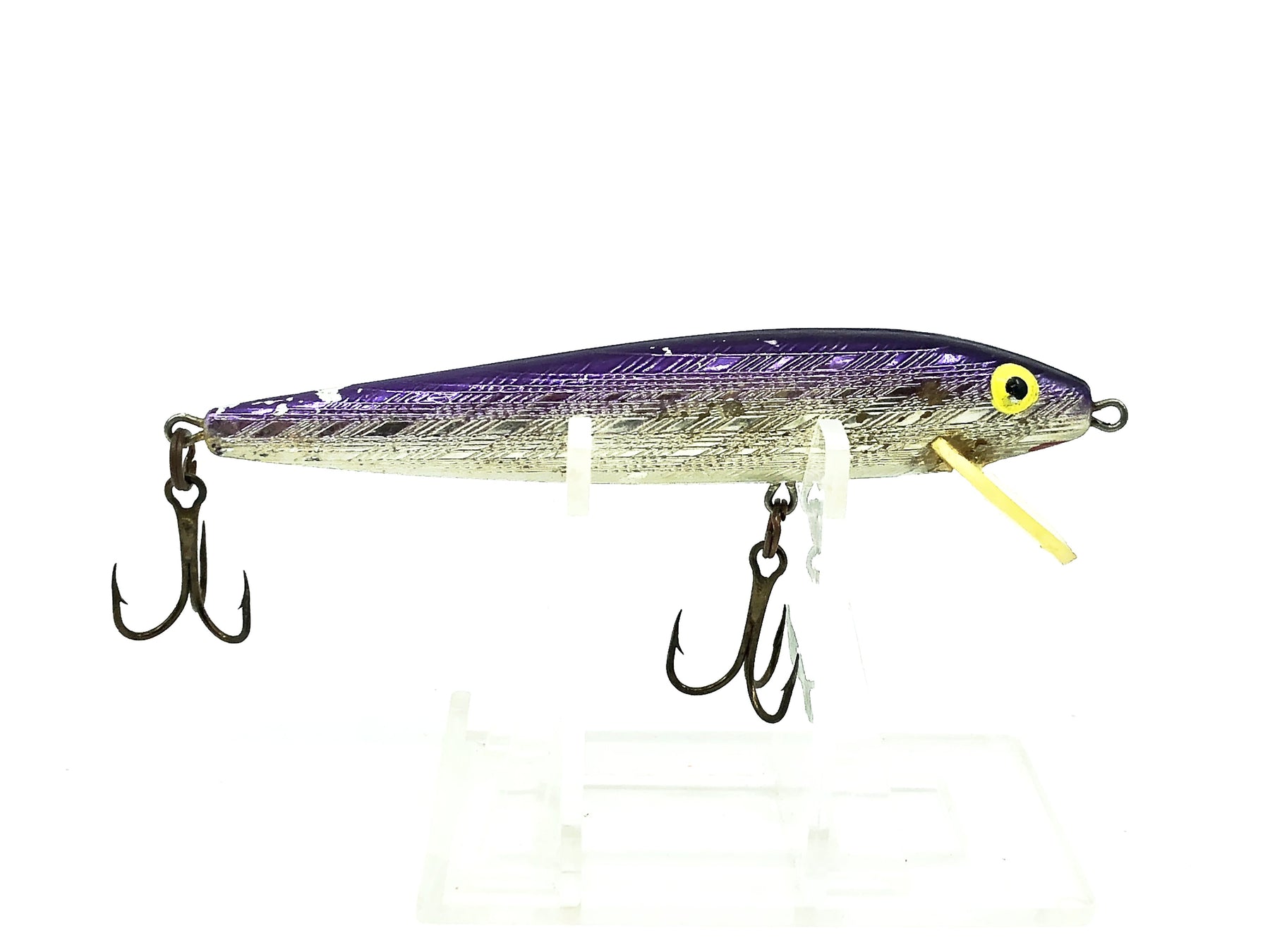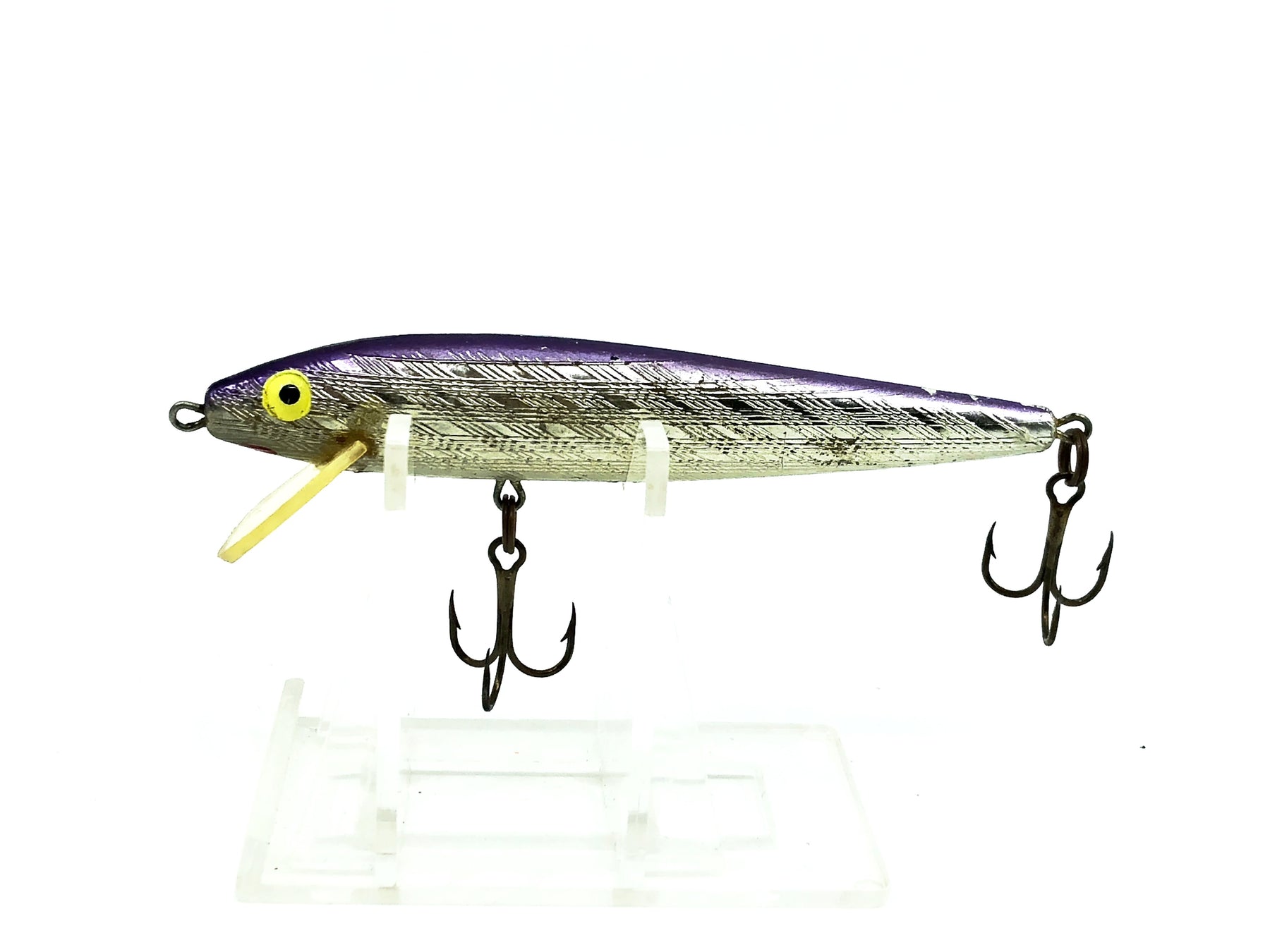 Rebel Floating Minnow F10, #05 Silver/Purple Back Color. Older vintage Rebel here. About 3 1/2" long. Lure is used with some wear and marks but in overall good condition, see photos. Fish or collect.