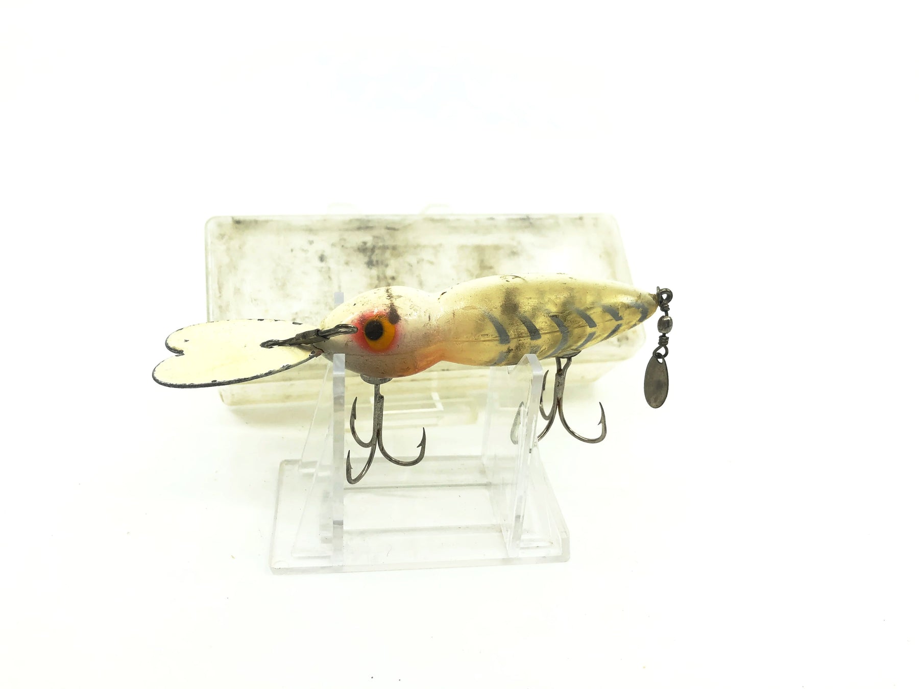 Hellbender Whopper Stopper, White Shore Minnow Color with Box. Used with some wear but overall ok condition, see photos.  About 4 1/4" long including lip. Box is in ok condition with wear.  Great classic lure here great for your collection or tackle box!  See Photos.