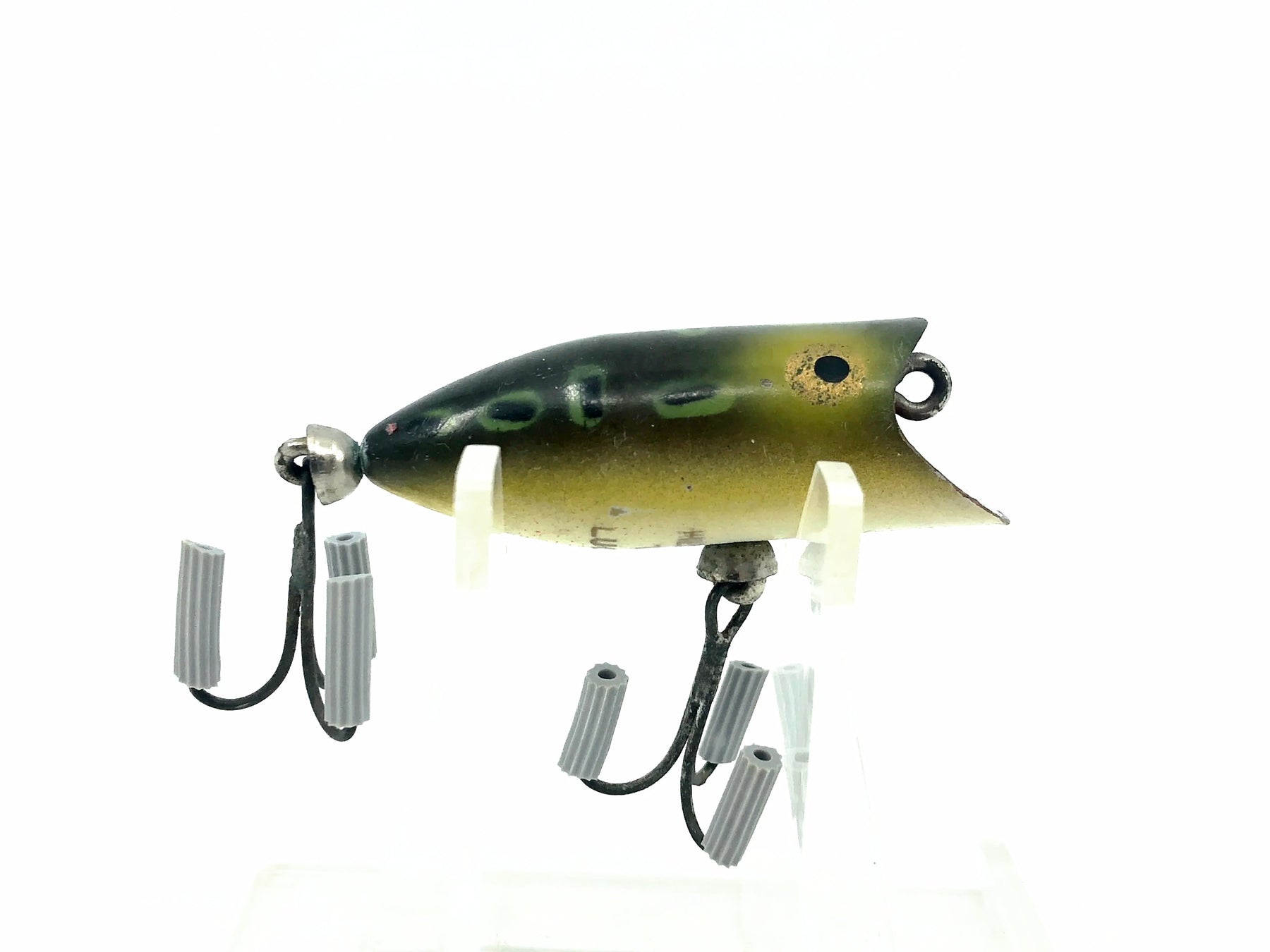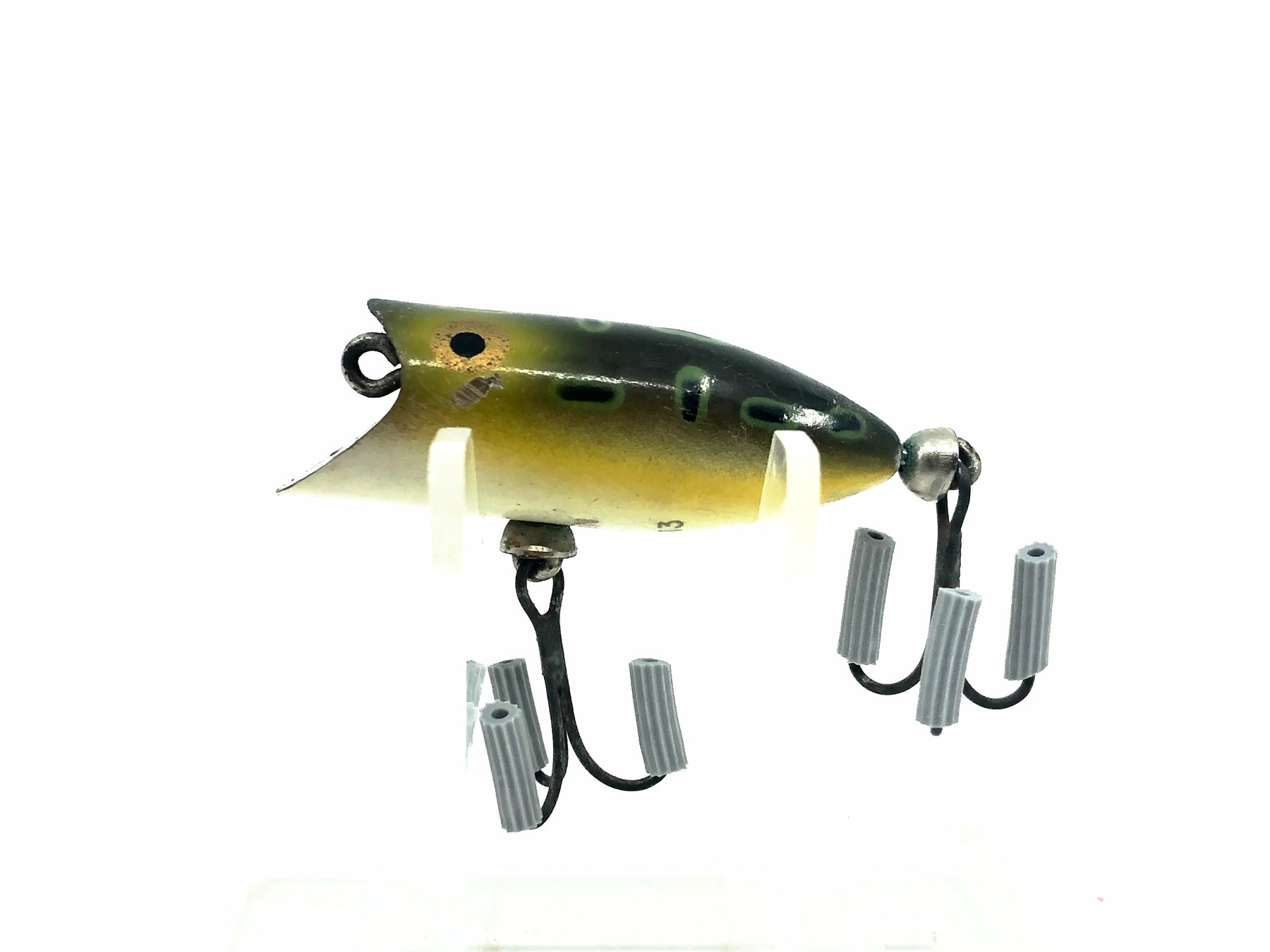 Heddon Tiny Lucky 13, BF Frog Color. Classic top water bait here. About 2" long. Lure is used with some wear and marks but still overall good condition. Fish or collect. See photos.