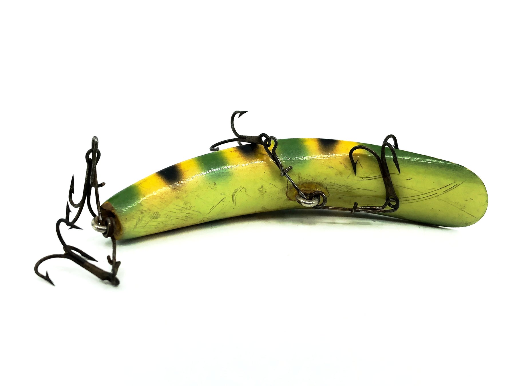 Helin Wooden Flatfish T4, FR Frog Color. Vintage Helin here. About 3 5/8" long. Used lure with some minor wear but in overall good condition. Classic lure here. See photos. Fish or collect!