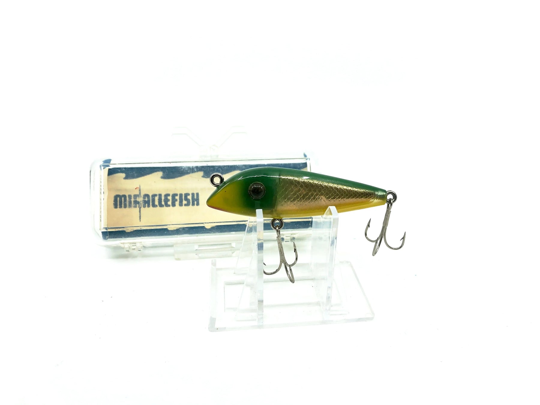 Miracle Tackle Co. MiracleFish, Little Savage, Green Gold Scale Color. Hard to find Florida bait that's new in box. Lure is about 2 3/4" long. Lure is new in box and the box is in good condition, see photos. Fish or collect.